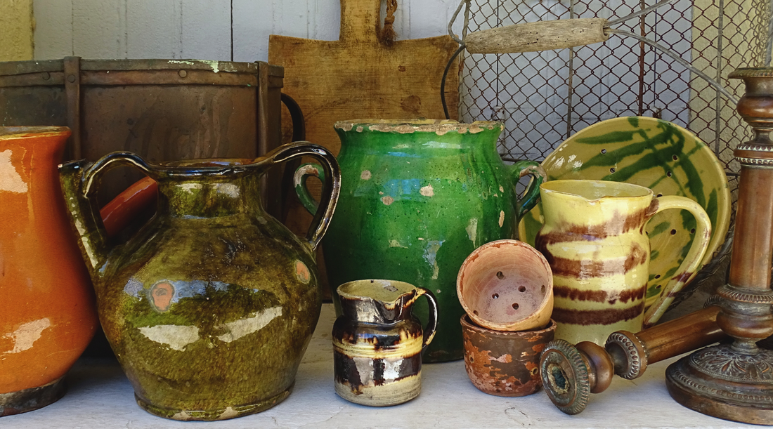 We also have a variety of antique glazed terracotta kitchenware. These pieces, with their rustic charm and earthy tones, bring a sense of the French countryside into your kitchen. They are perfect for everyday use or as decorative items that evoke a cosy, homey atmosphere.