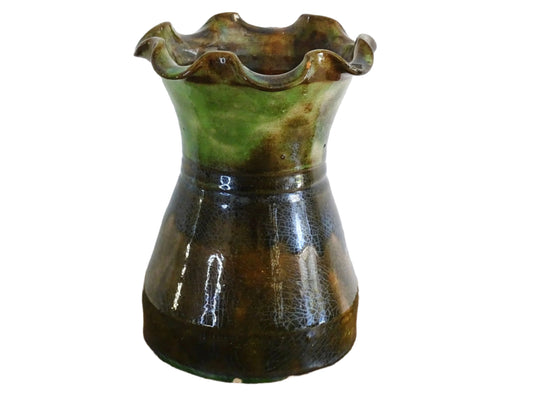 French Antique Gargoulette with Green and Yellow Glaze 8.7"