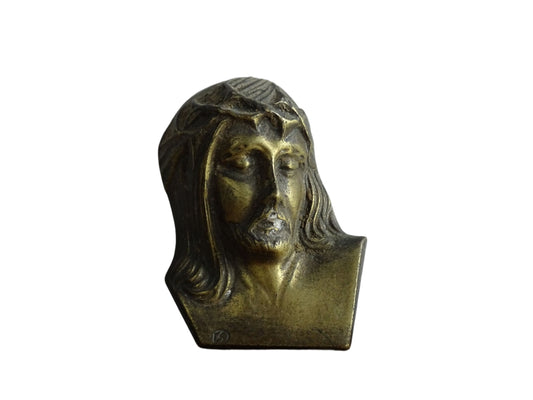 French Vintage Brass Jesus Wall Plaque 3.3"