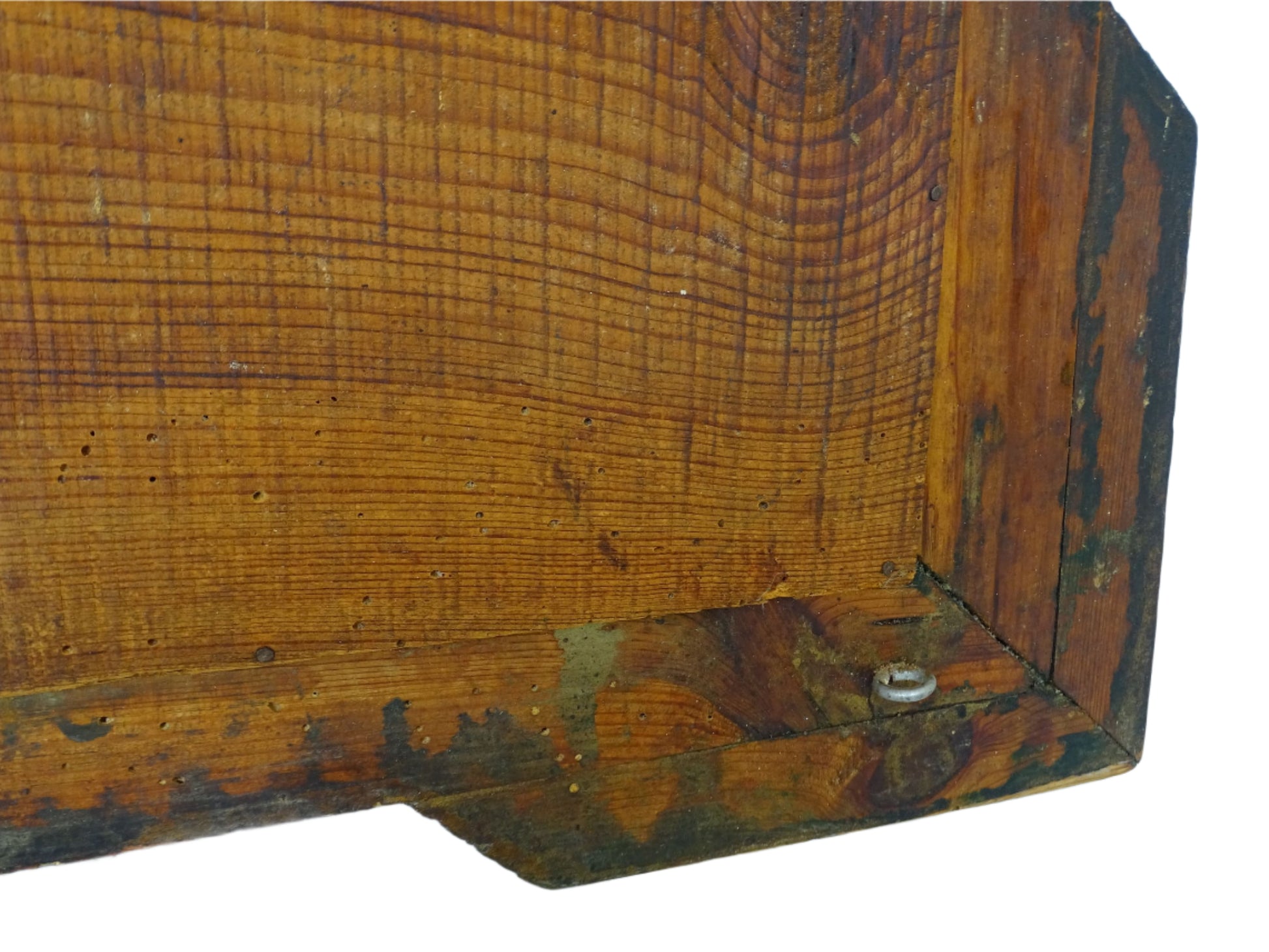 Condition: There is foxing to the glass, along with wear to the frame and backing. Please refer to all the images. There is a screw in the back, partially visible through the frame. There are old wood-worm holes that have been treated as a precaution.