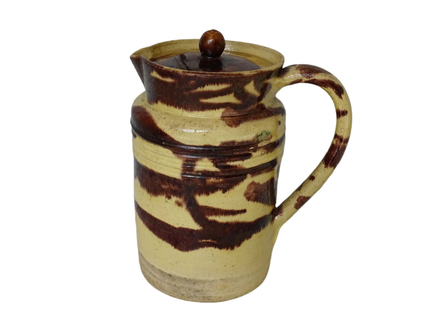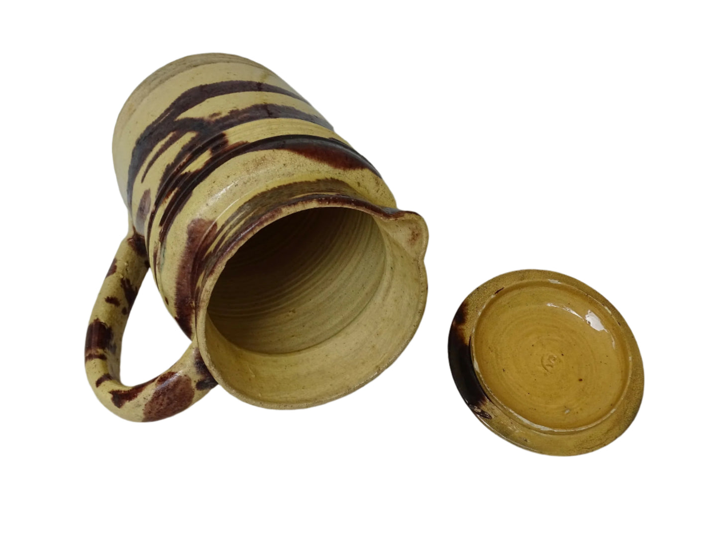 Large French Antique Ceramic Pitcher with Lid from Dieulefit 9.1"