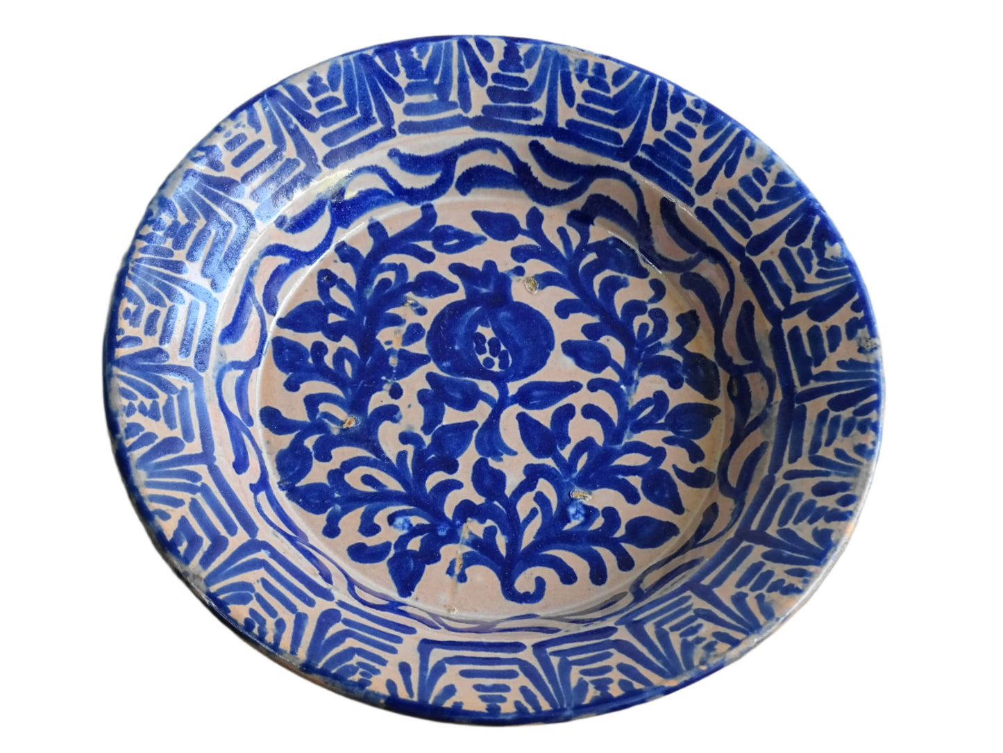 Cuenco Fajalauza Azul Español Antiguo con Granada Detalles:
