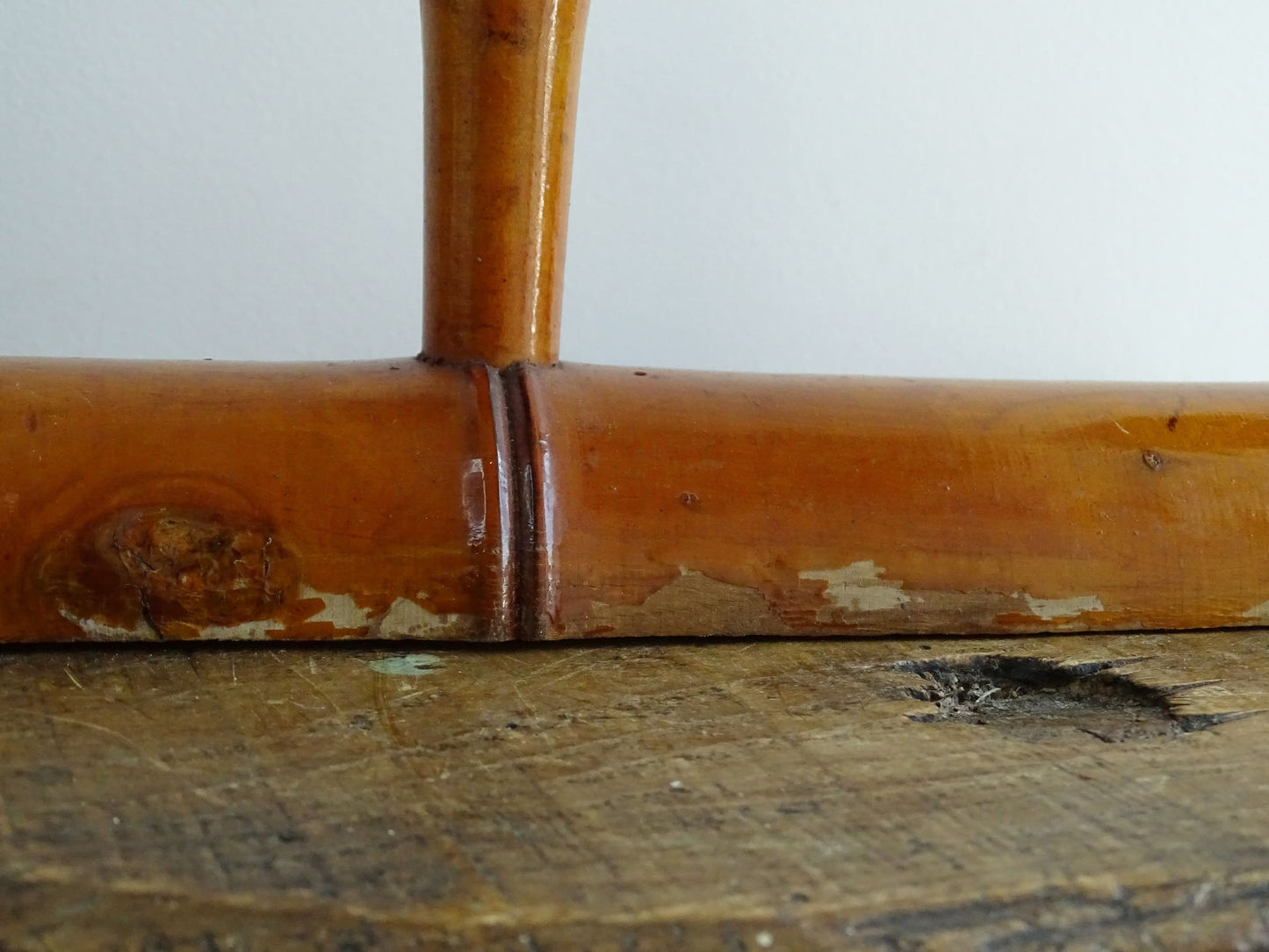 Perchero francés vintage de imitación de bambú con cuatro clavijas, que data de la década de 1930 o 1940. Un complemento perfecto para un pasillo o quizás en la cocina para guardar la ropa de cama.