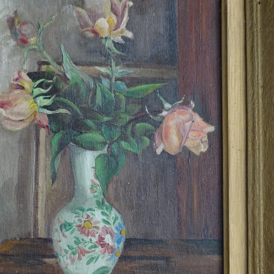 Peinture à l'huile de nature morte antique française dans un cadre doré 18,6" x 15,5"