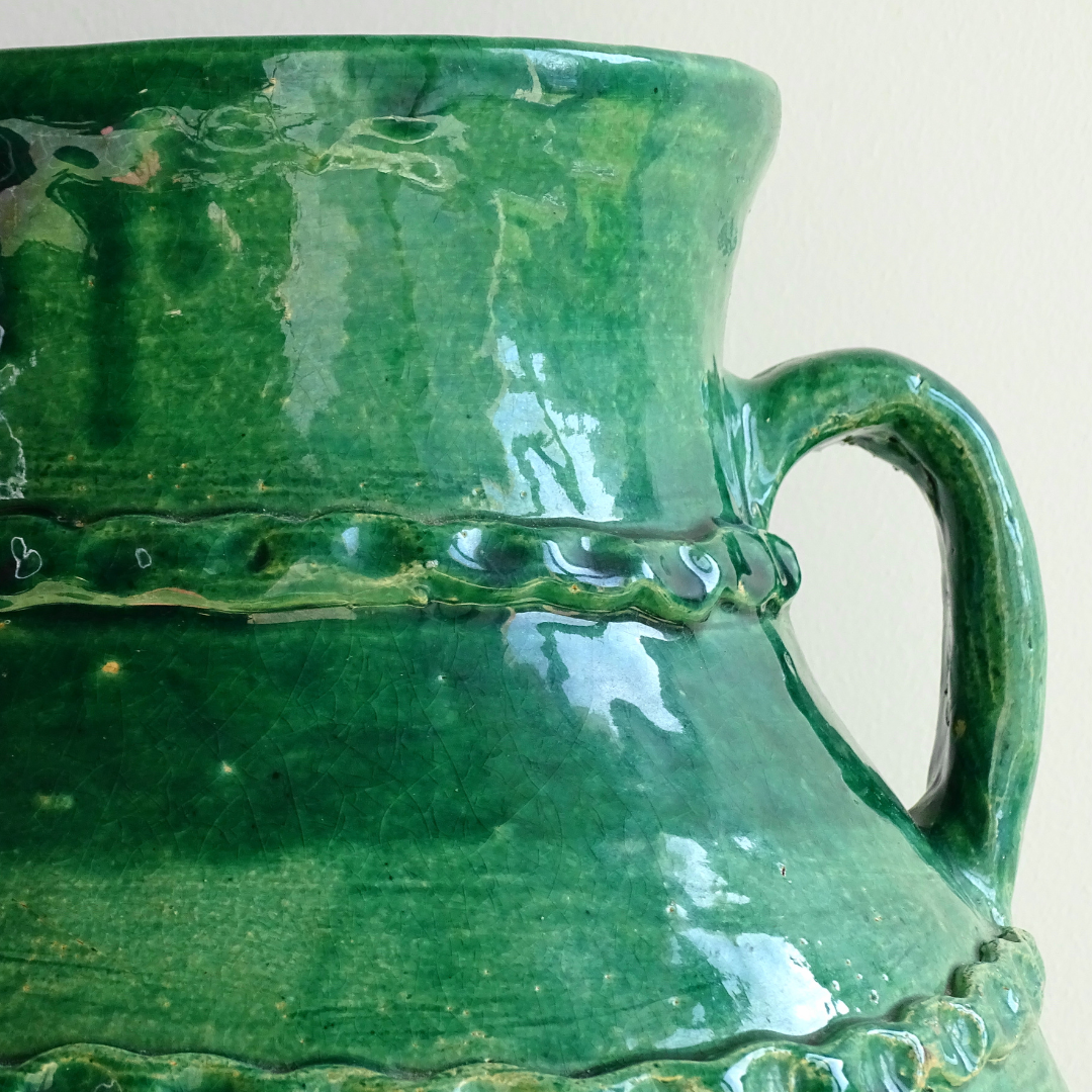 Cruche ou Orjol antique français avec glaçure verte 8,7"