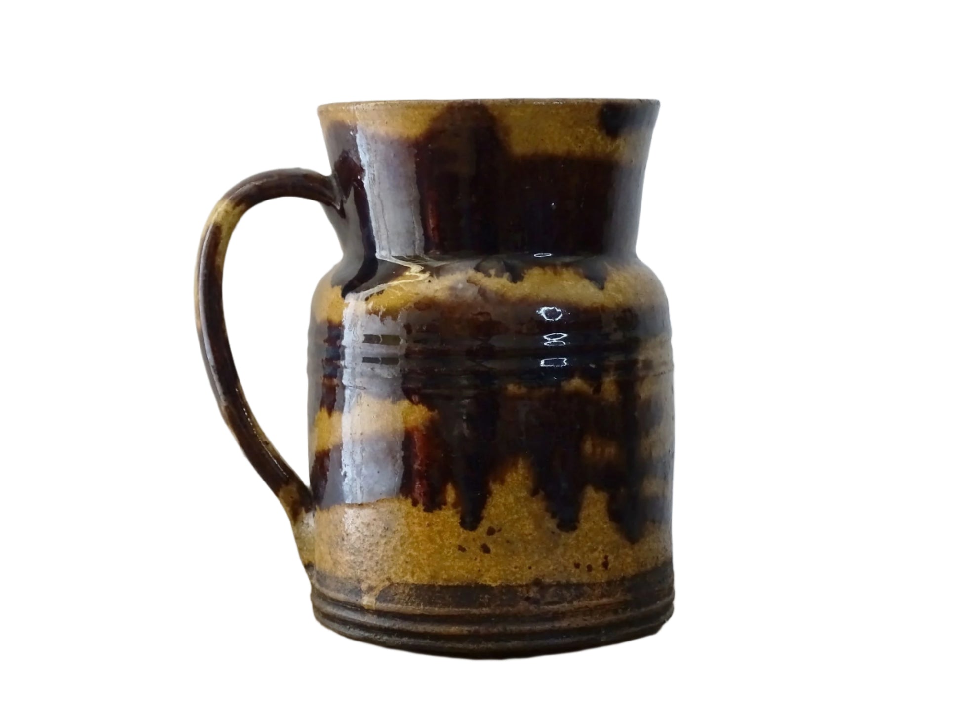 Pichet ancien en céramique française de Dieulefit avec glaçure brune 5,5"