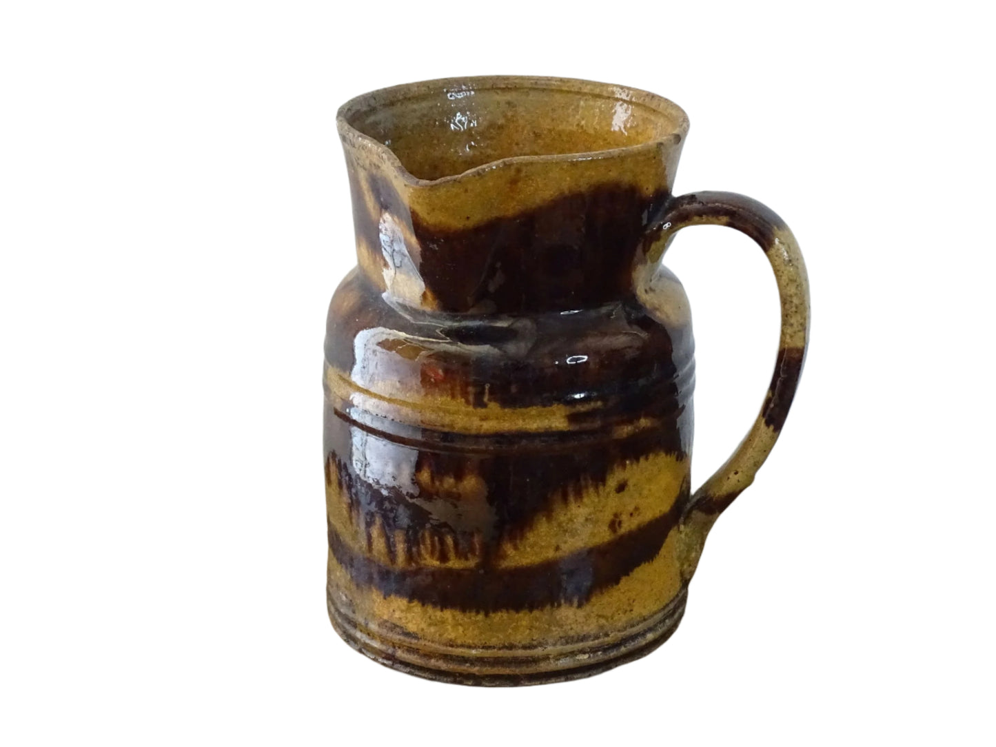 Pichet ancien en céramique française de Dieulefit avec glaçure brune Détails :