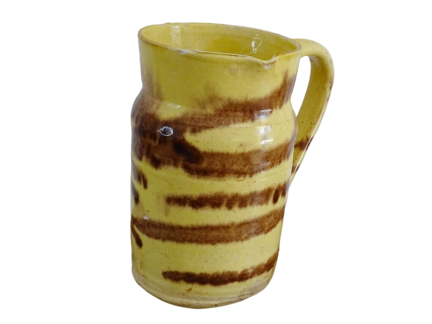 Pichet ancien en céramique française de Dieulefit avec glaçure jaune Détails :