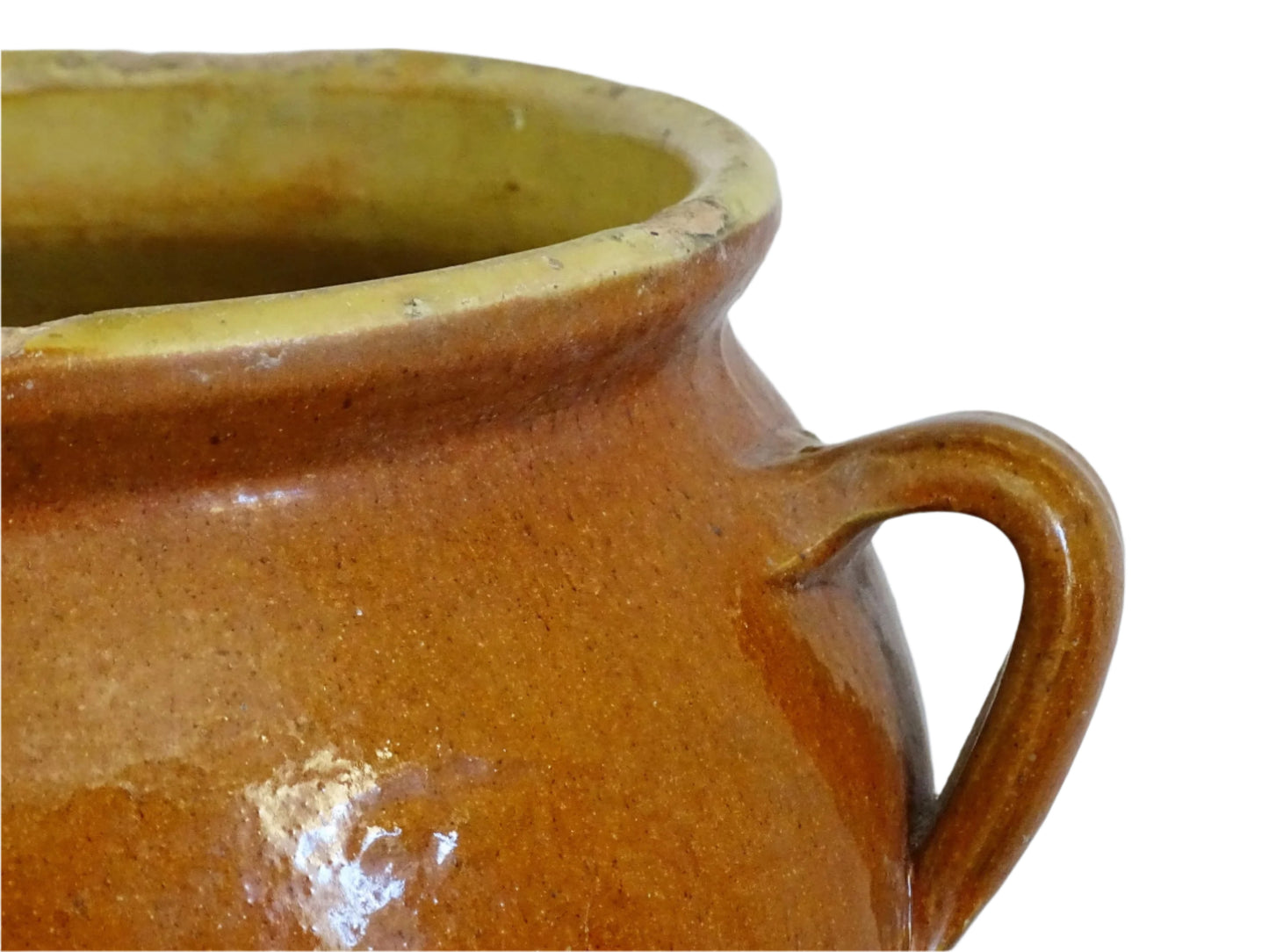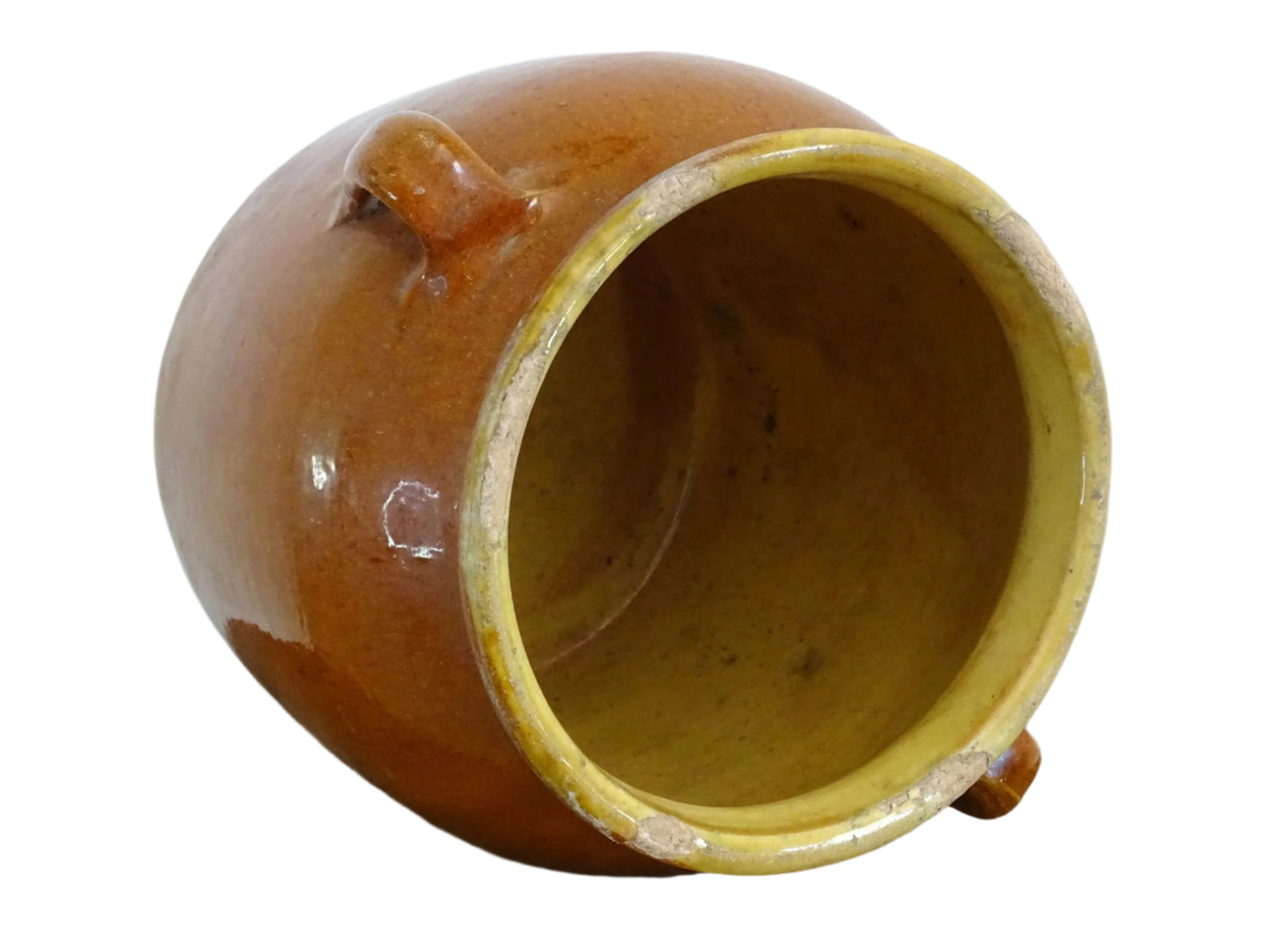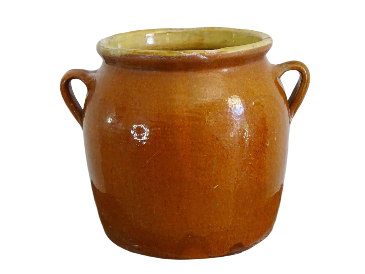 Pot à confit antique français avec glaçage à l'orange Détails :