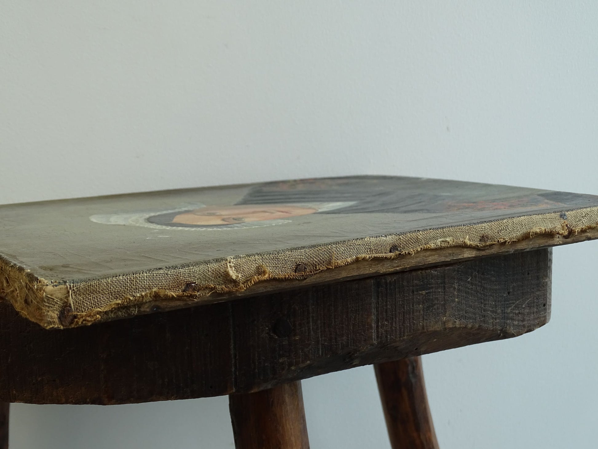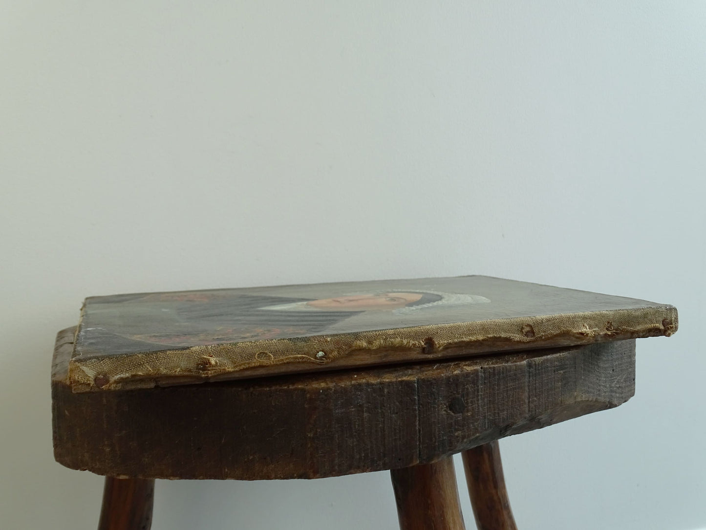 Bien que non signé, ce portrait d'art populaire antique est un bel exemple, avec une palette chaude et terreuse.