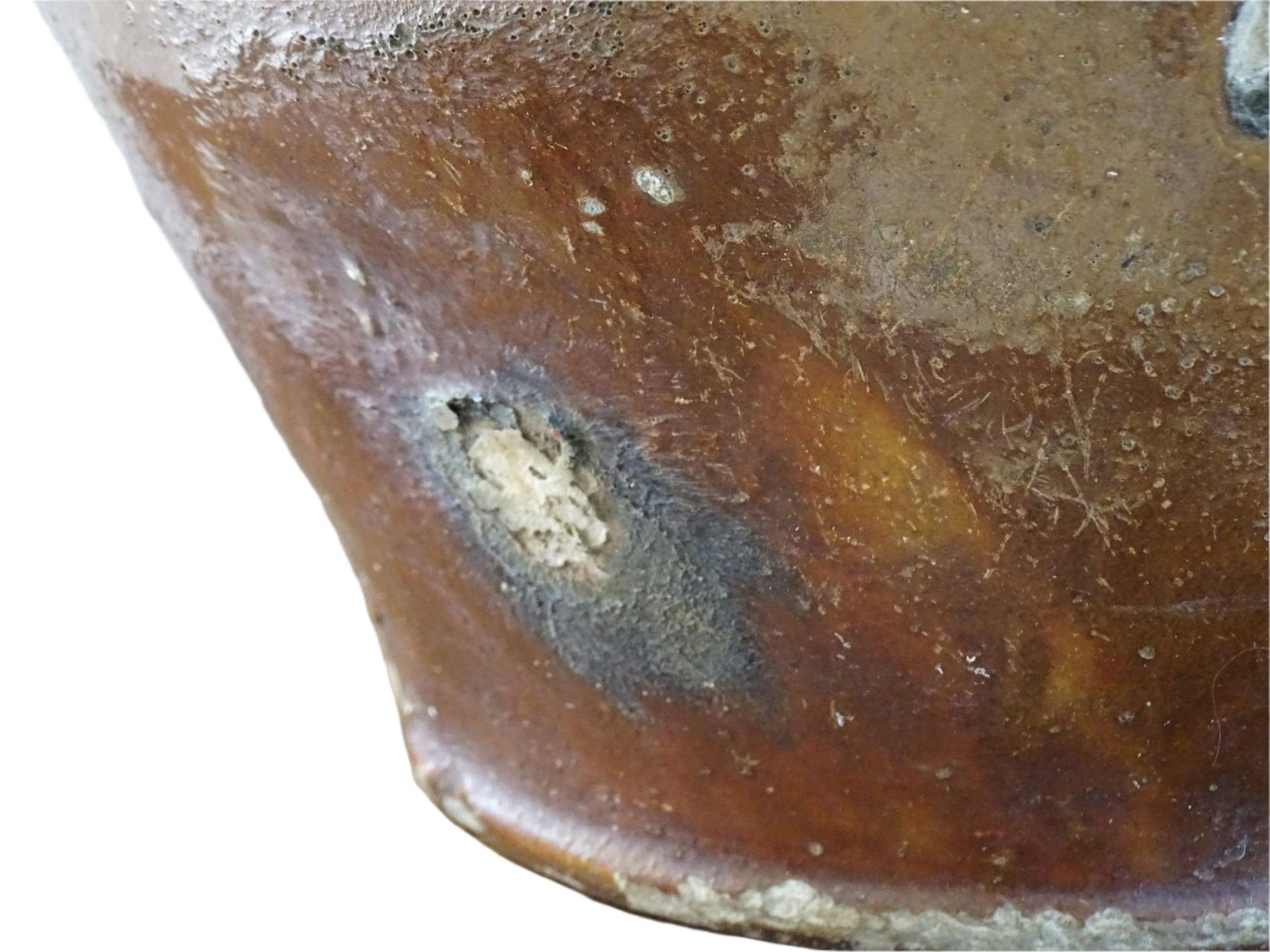 Il y a des éraflures sur la glaçure et quelques éclats sur la base.