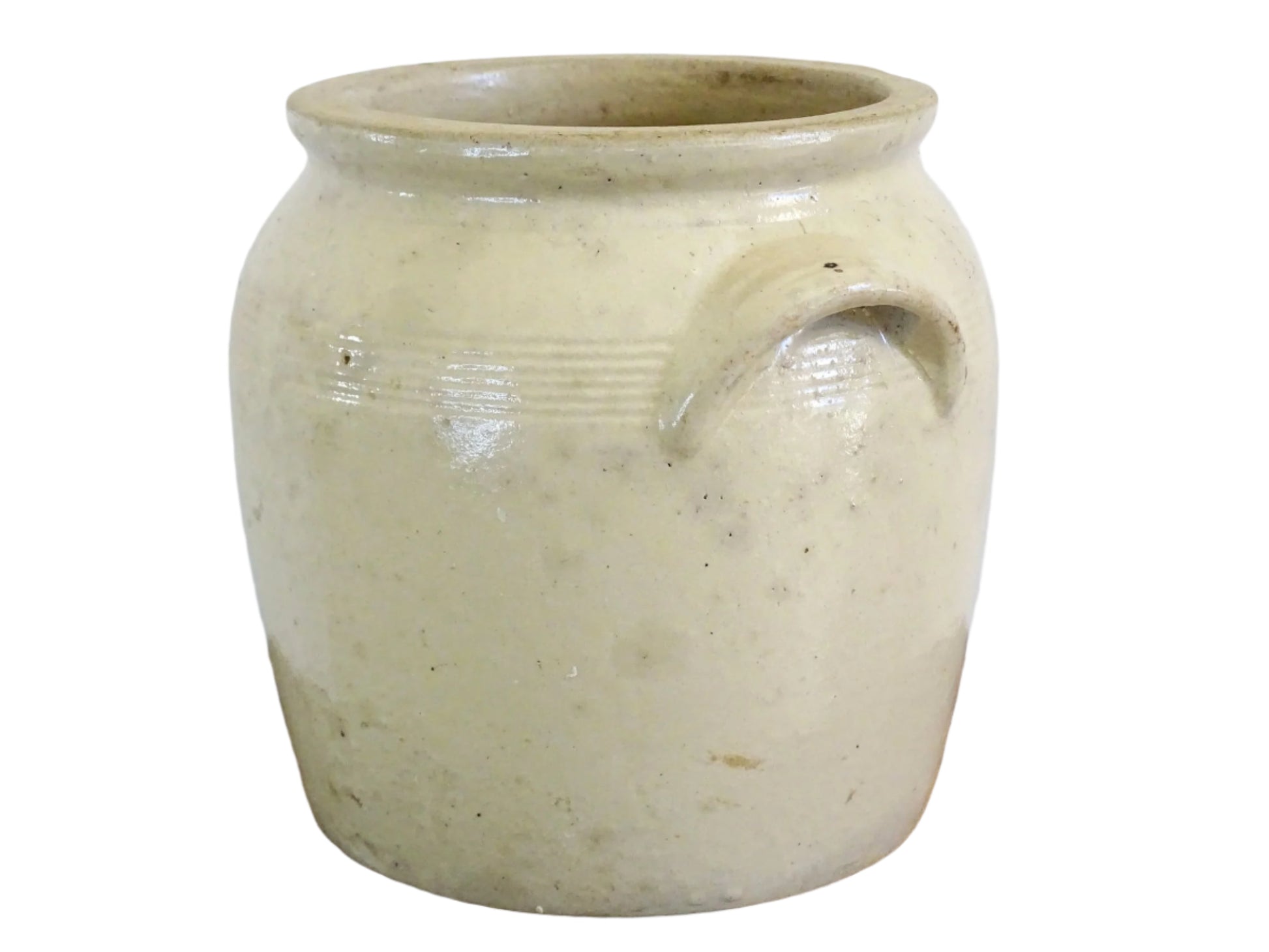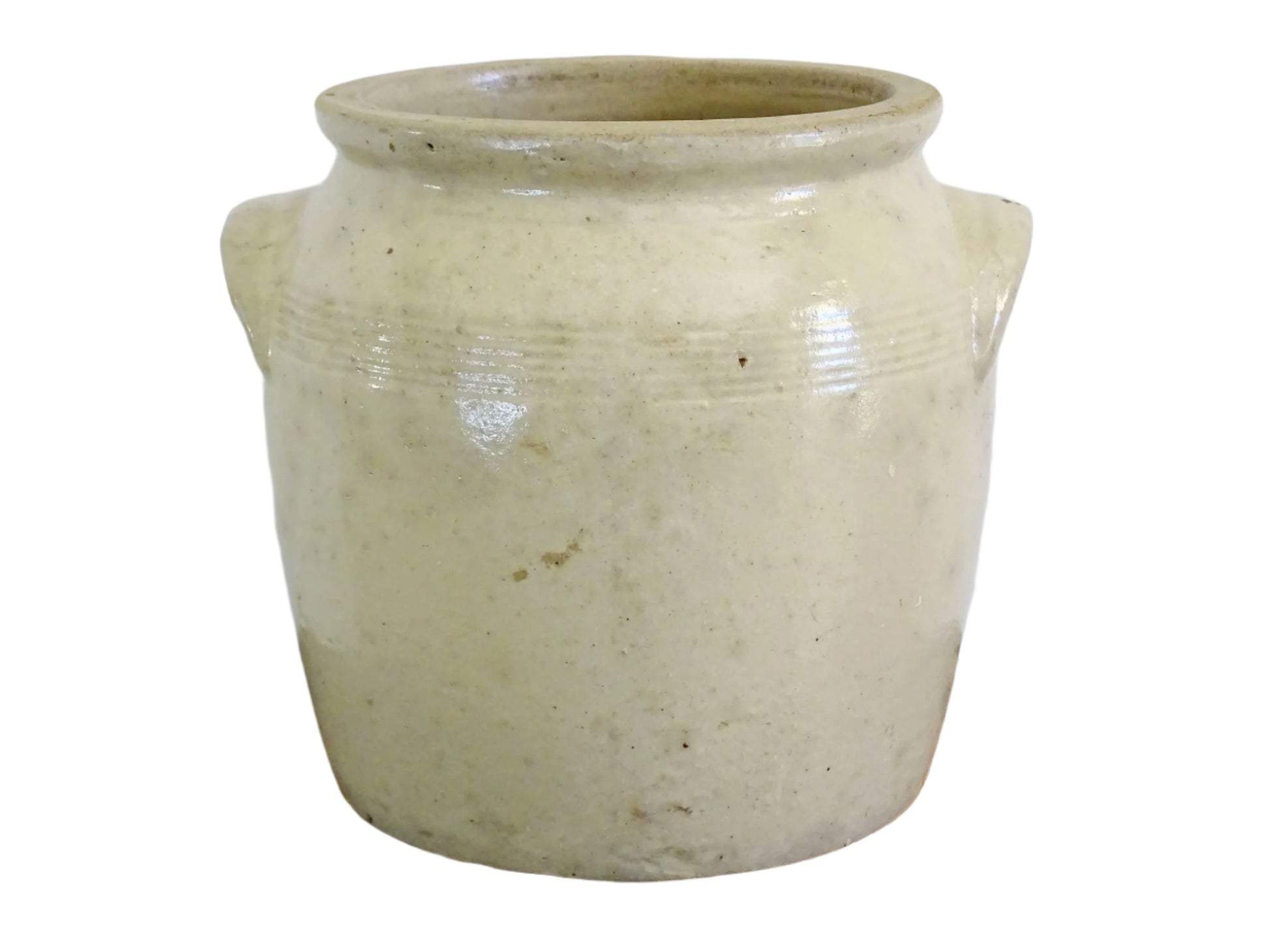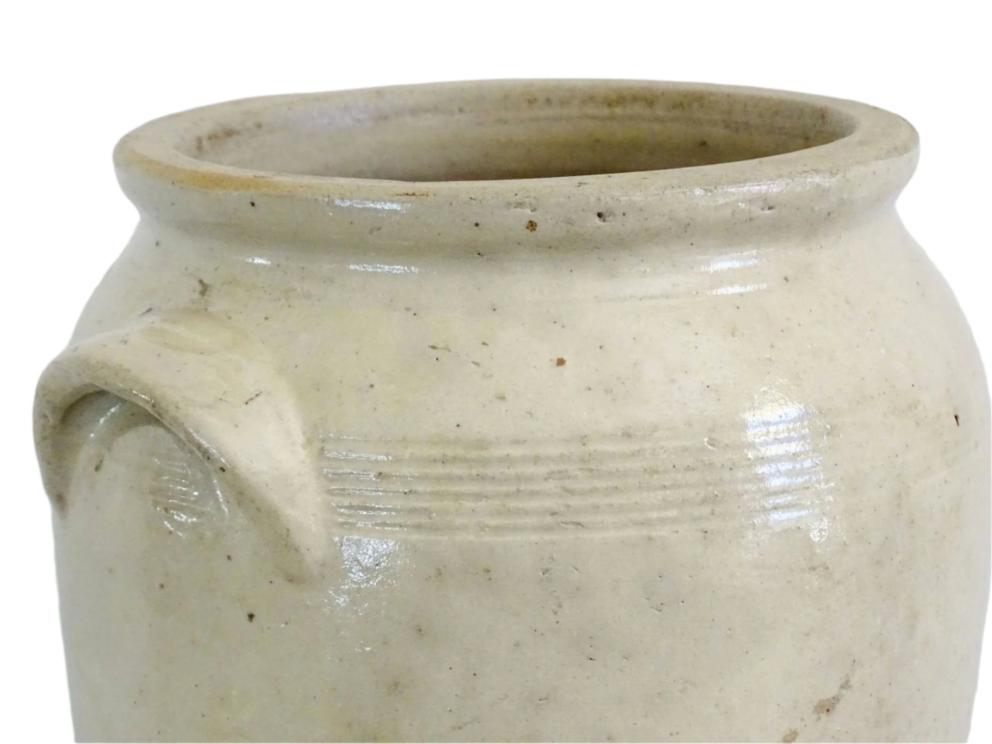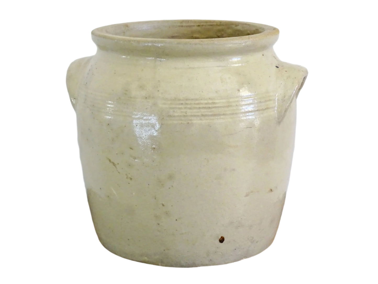 Pot à confit ancien en grès français avec glaçure beige 9,1"