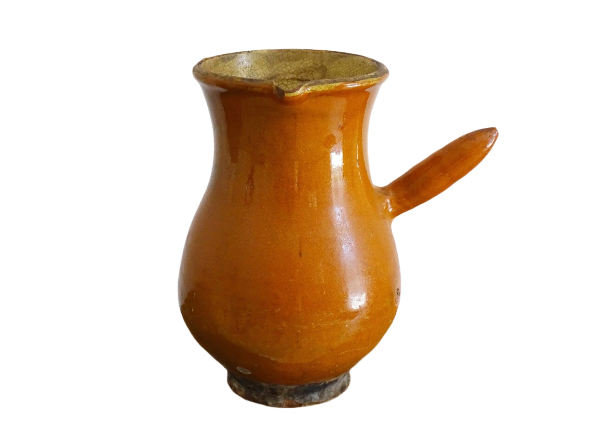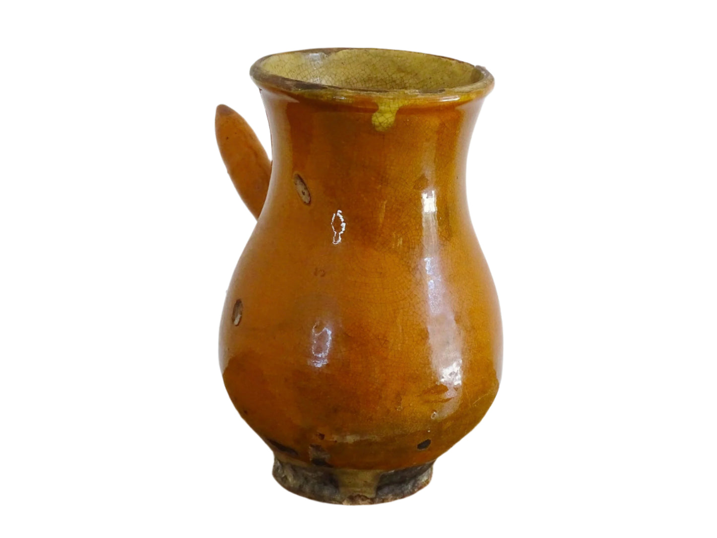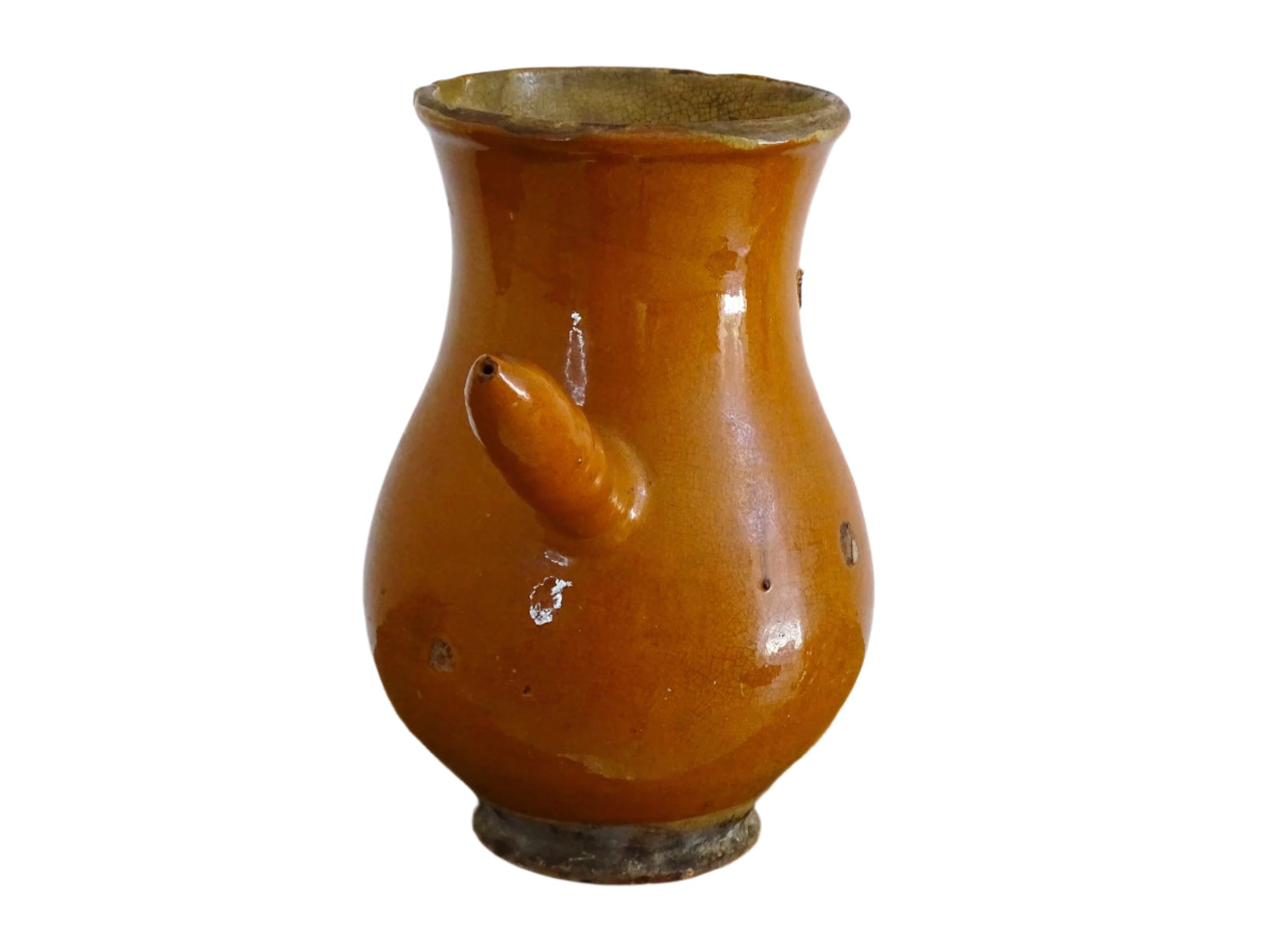 Cruche ancienne française en terre cuite avec glaçure rouge Détails :