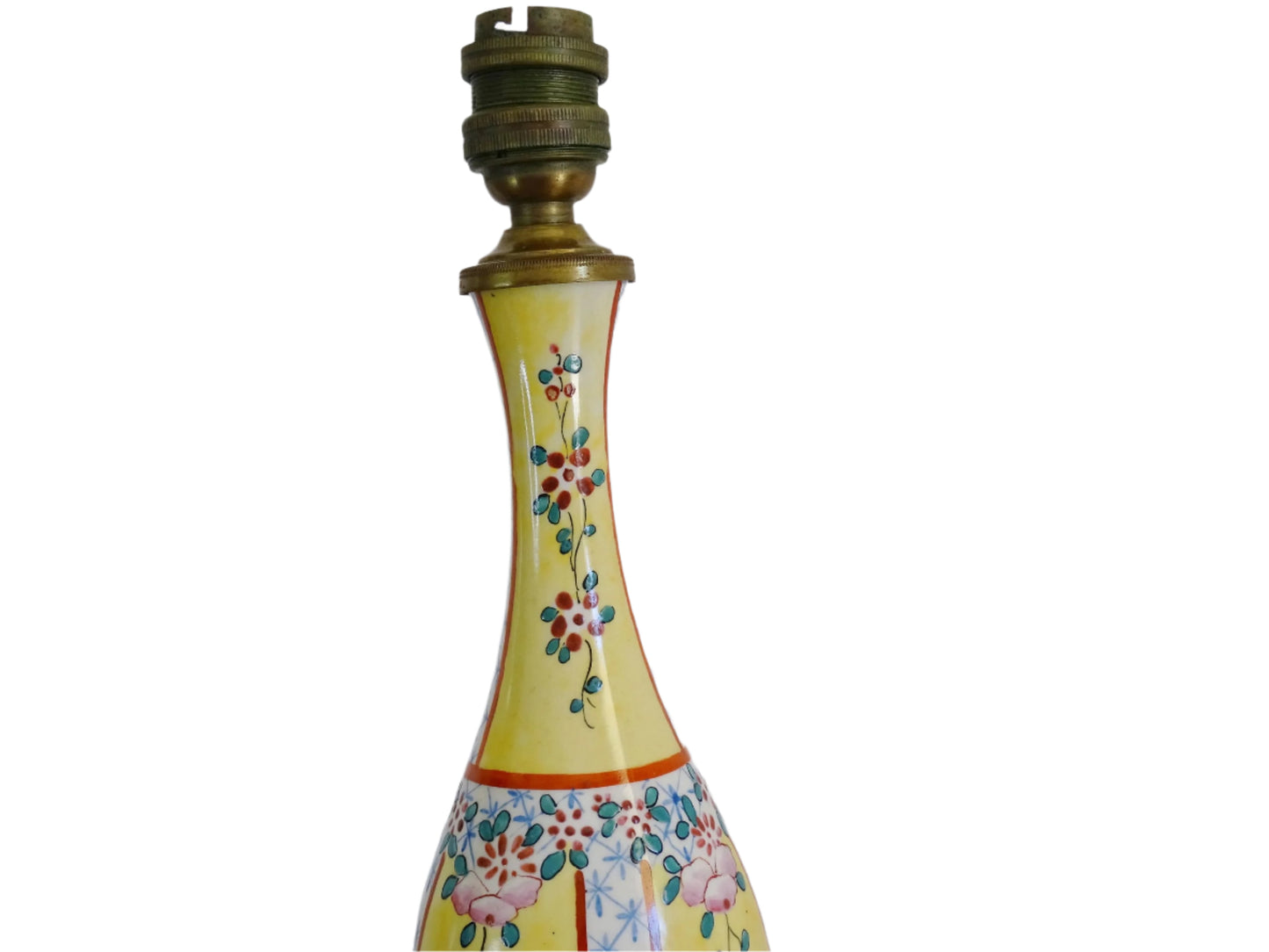 Pied de lampe vintage en porcelaine française de style chinoiserie Détails :