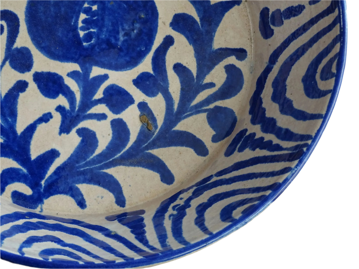 Grand bol antique espagnol Fajalauza avec grenade Détails :