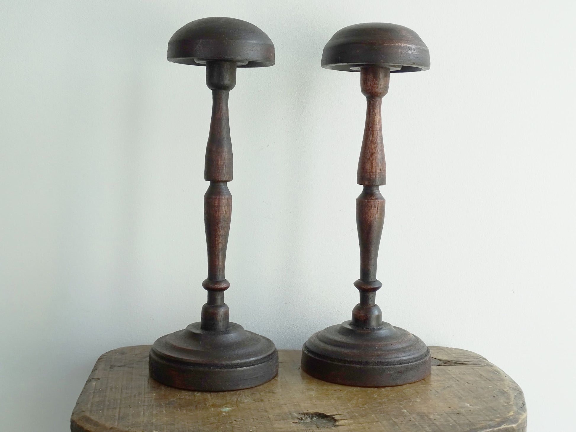 Paire de porte-chapeaux vintage en bois français 12,4"