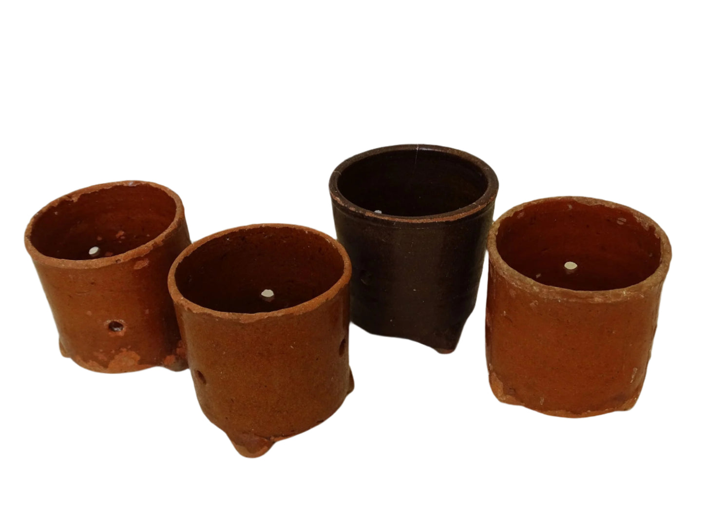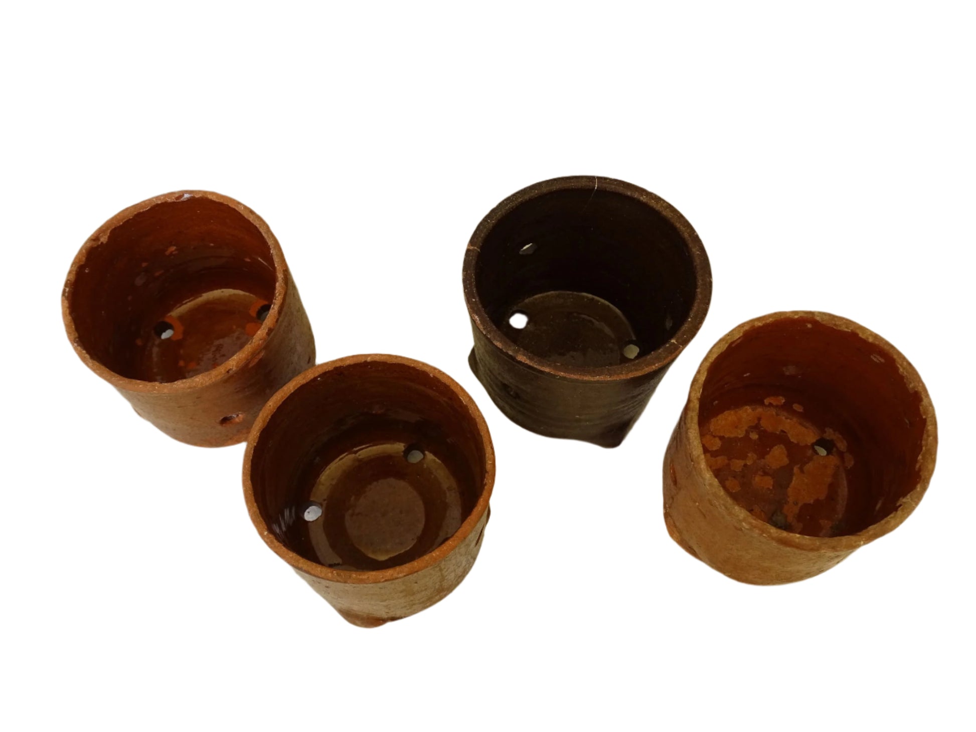 Ensemble de quatre faisselles anciennes en terre cuite française 3,1"