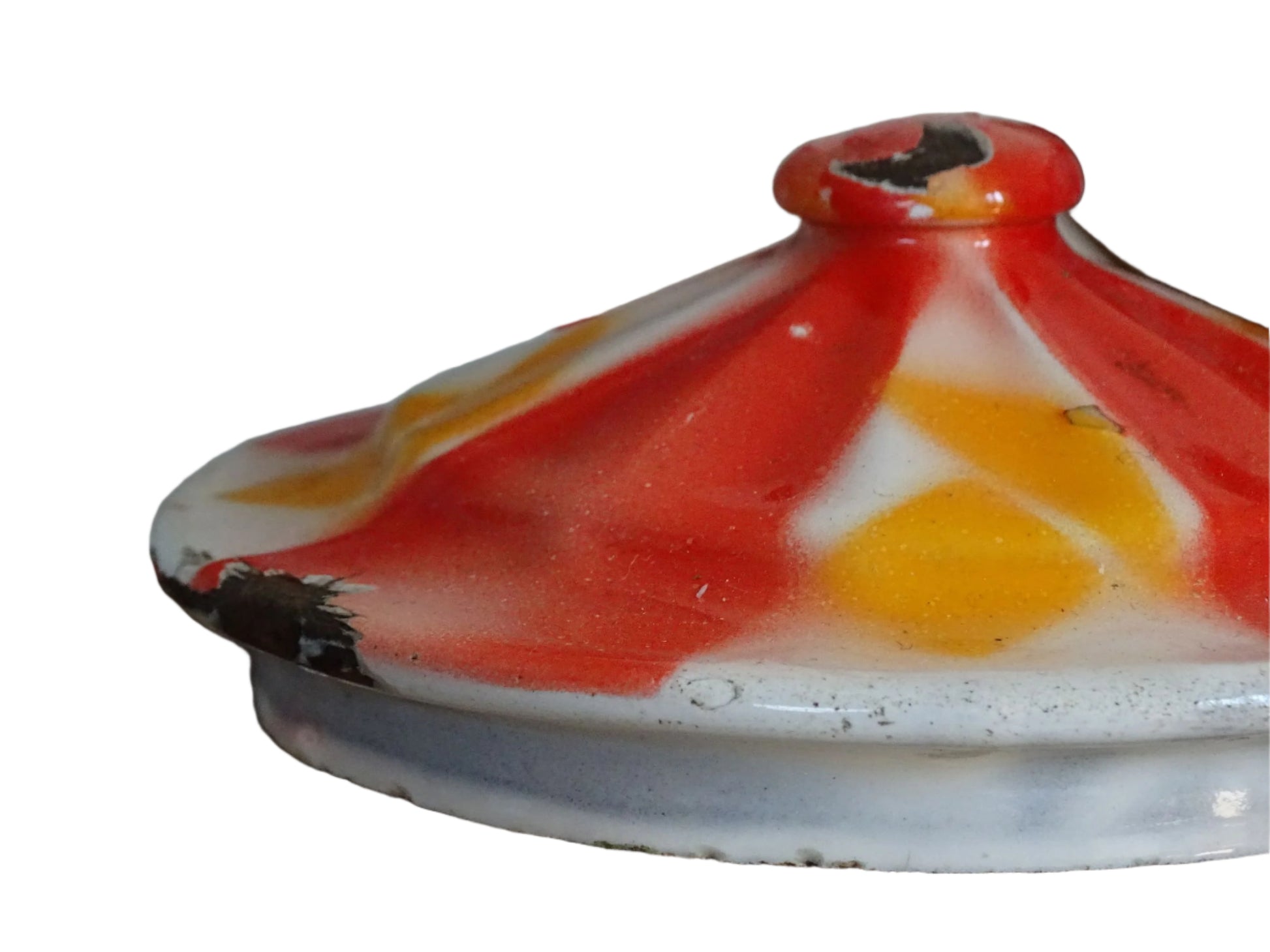 Ensemble de boîtes en émail vintage françaises en rouge et orange 7,5"