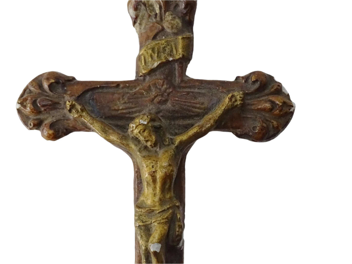 Petit Crucifix Ancien Français en Bois et Plâtre Détails :