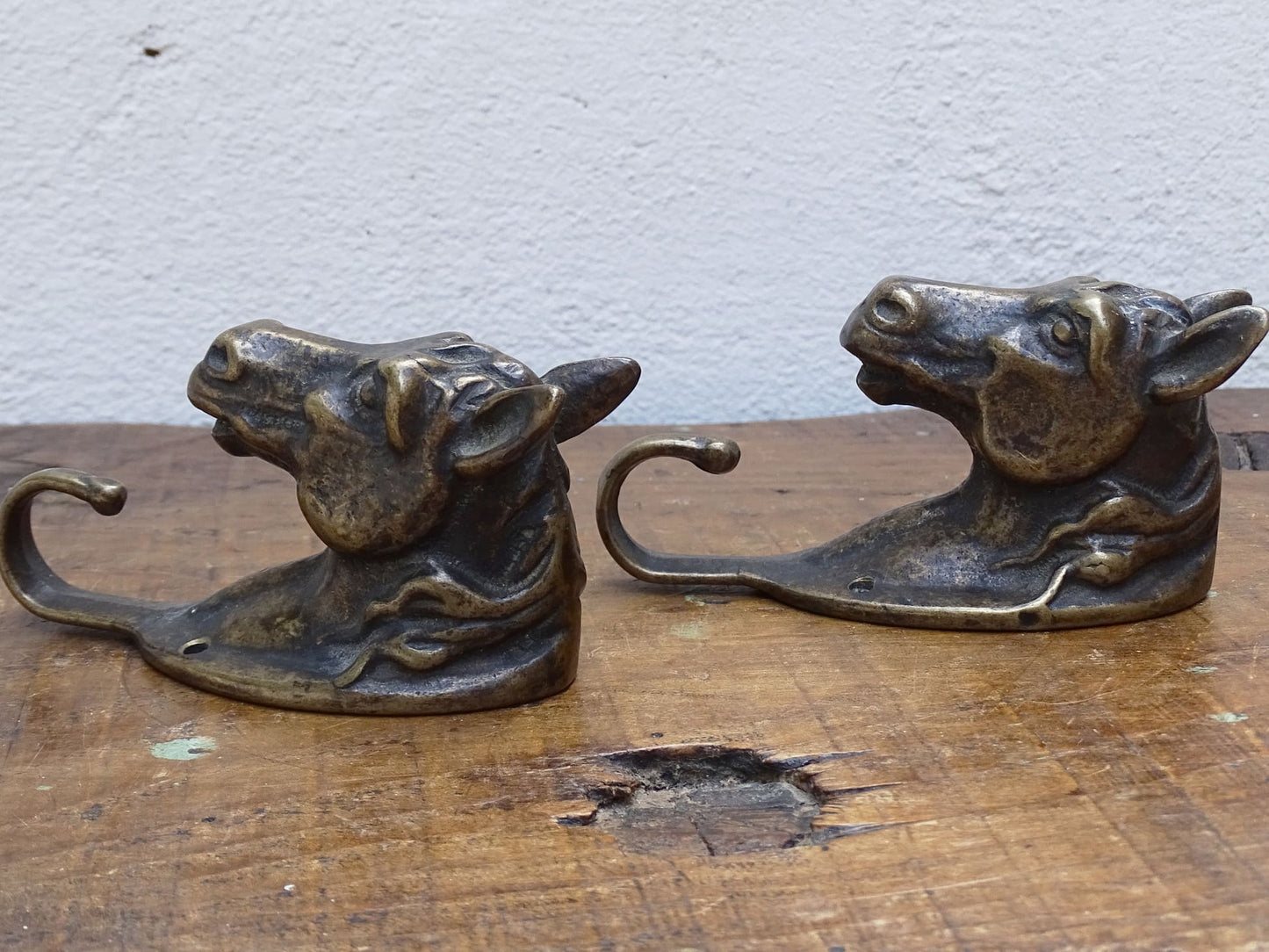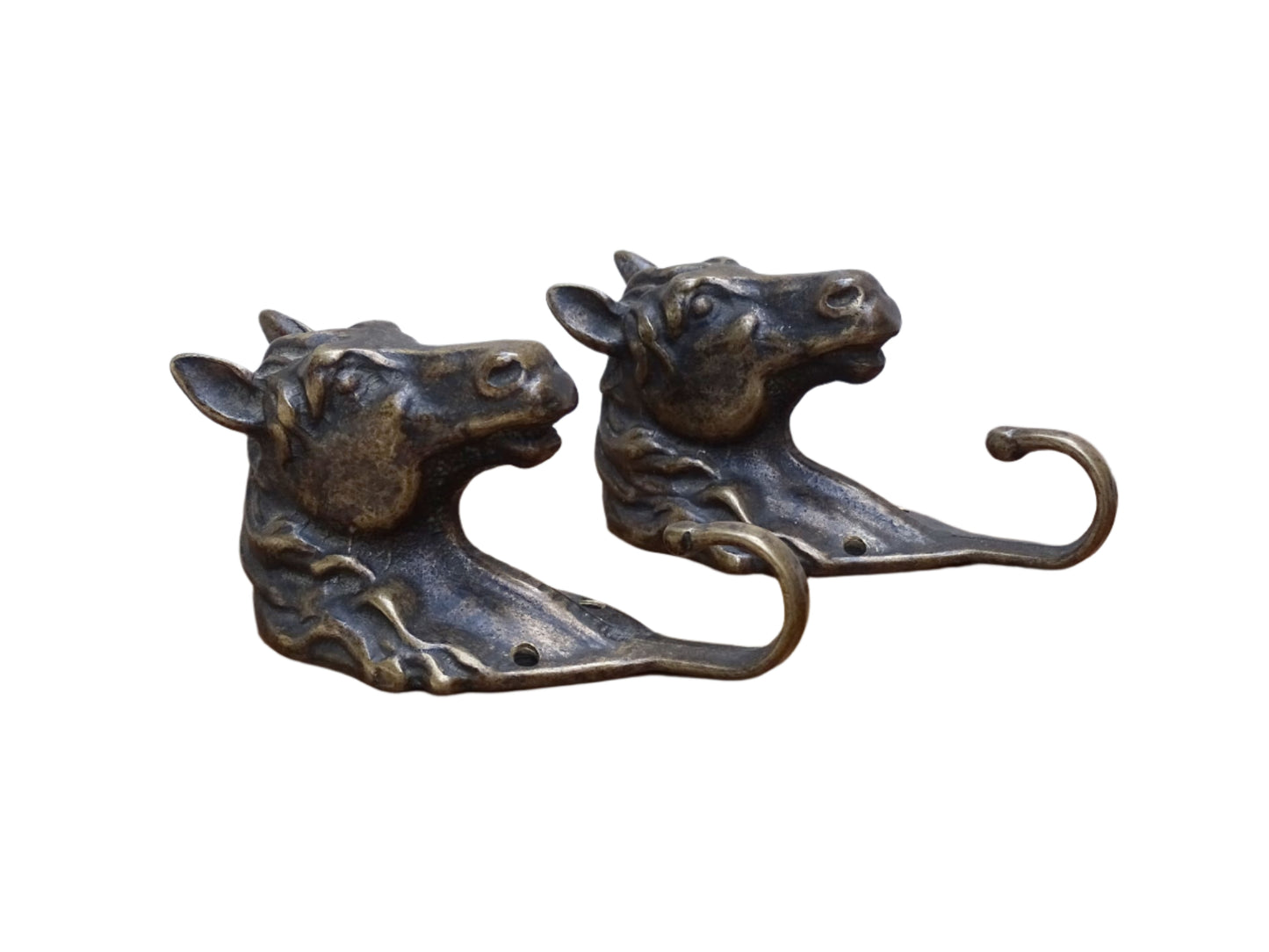 Paire de crochets pour chevaux en laiton vintage 4,3"