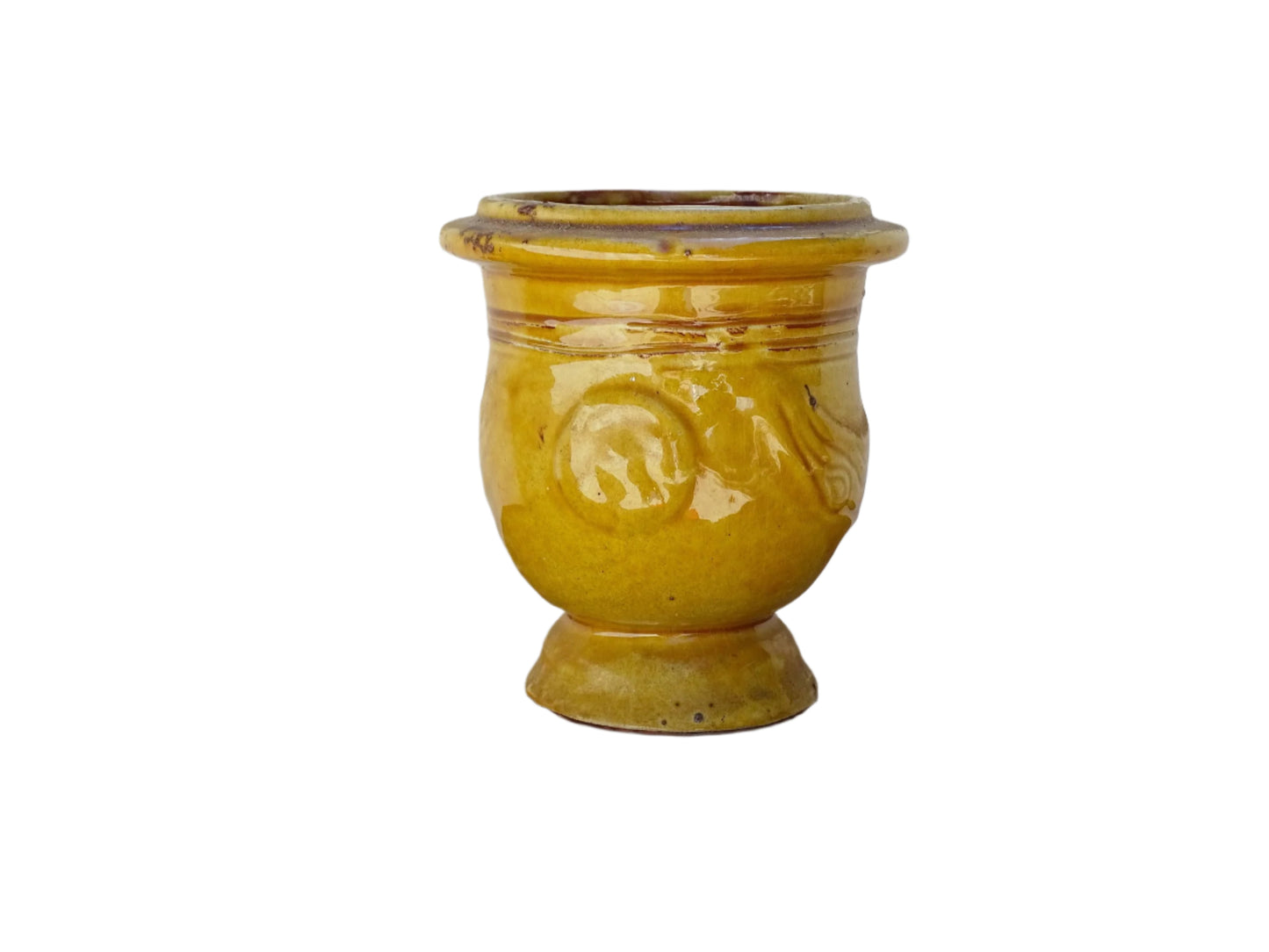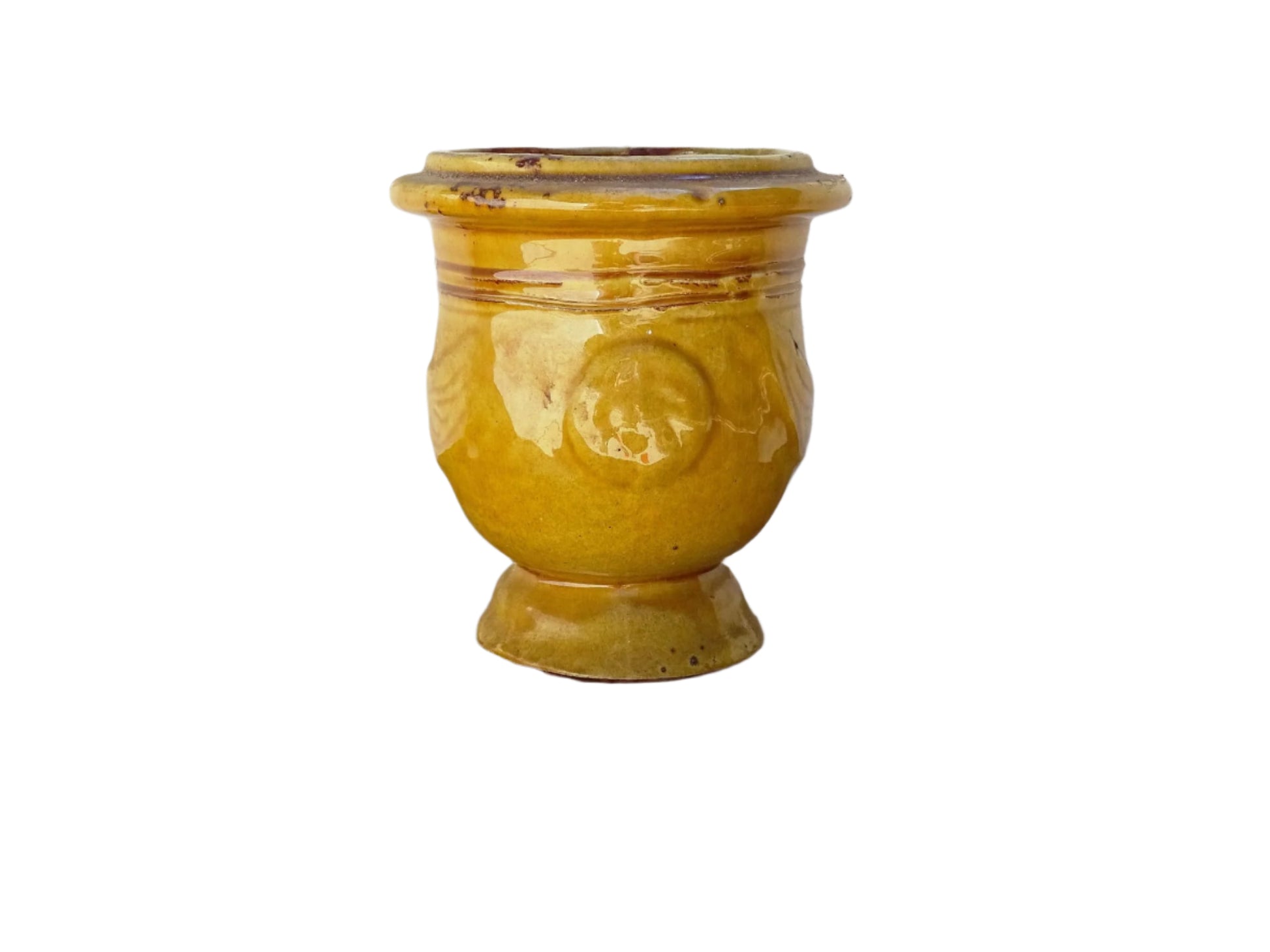 Jardinière d'Anduze vintage française avec glaçure jaune ocre 5,5"