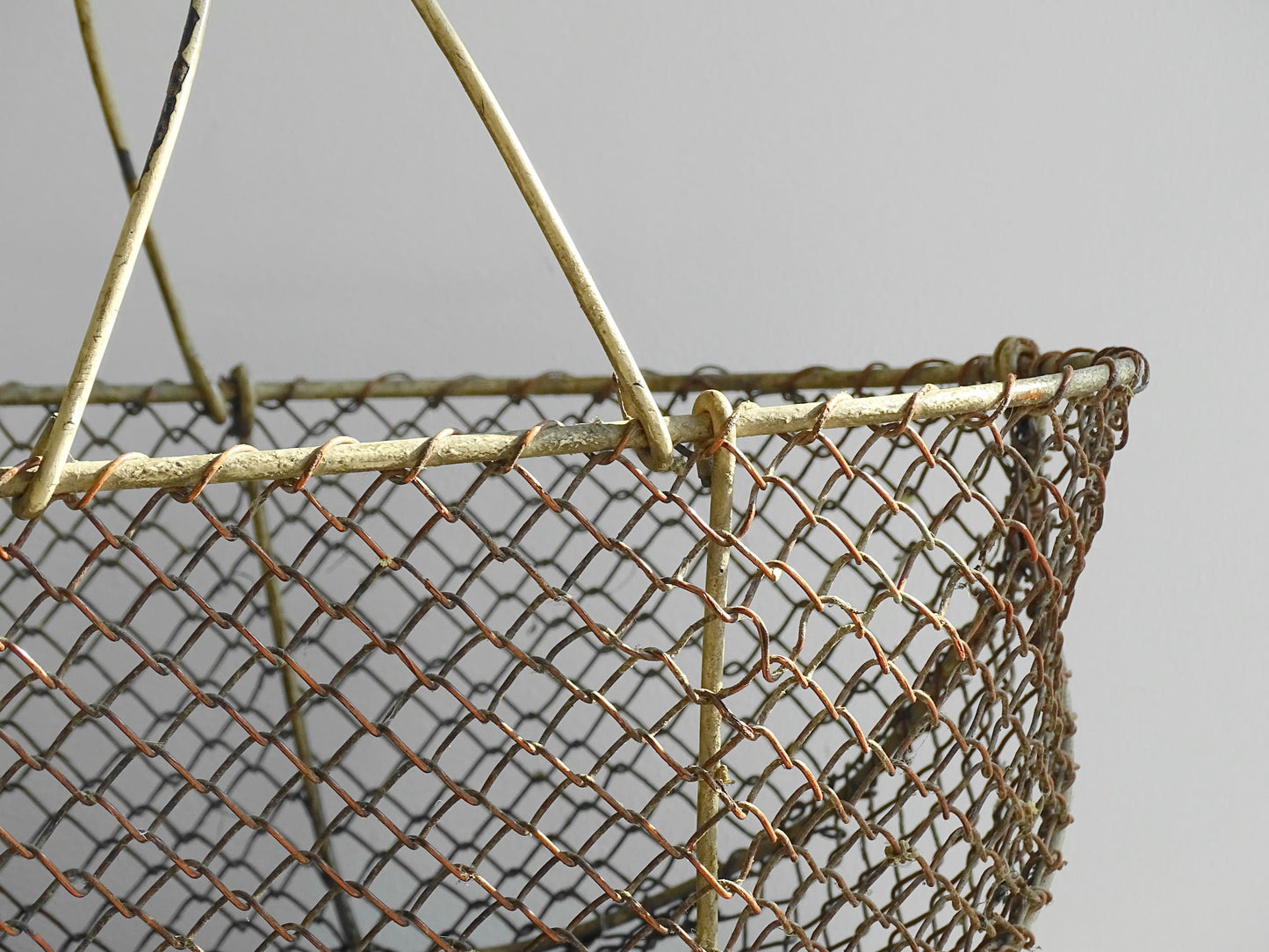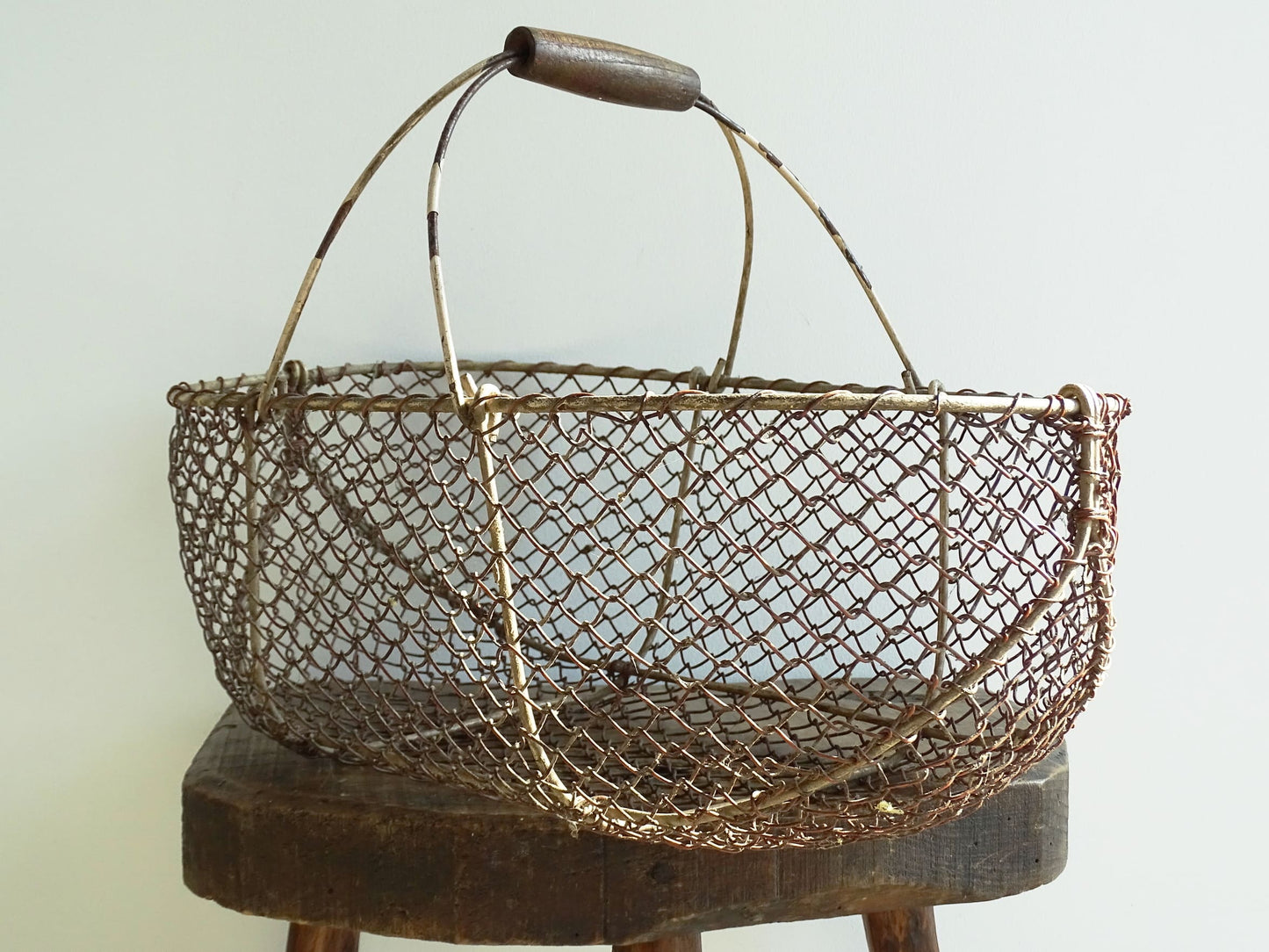 Panier de récolte vintage en fil de fer français avec poignée en bois Détails :