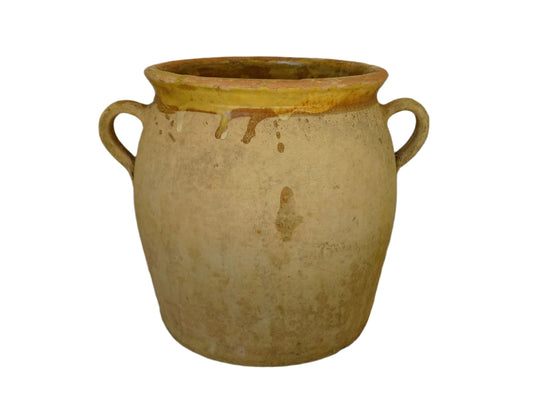 French Antique Stoneware Confit Pot with Beige Glaze 9.4"