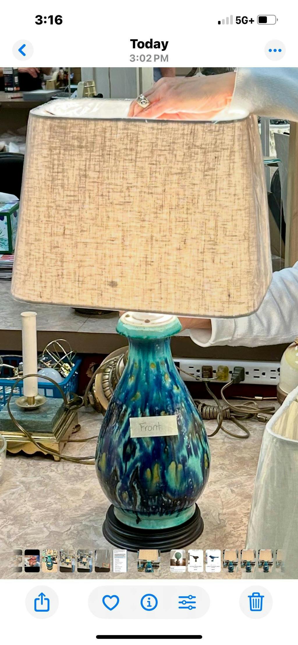 Took my lamp immediately to be rewired and choose a shade. It is beautiful !!!!