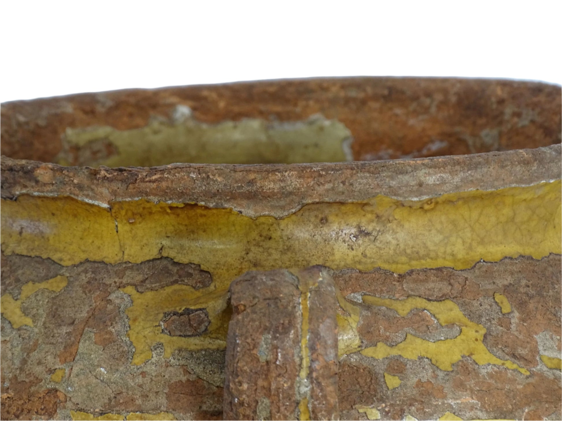 Antique French Confit Pot with Yellow Glaze 11.2"