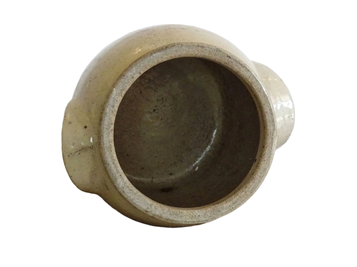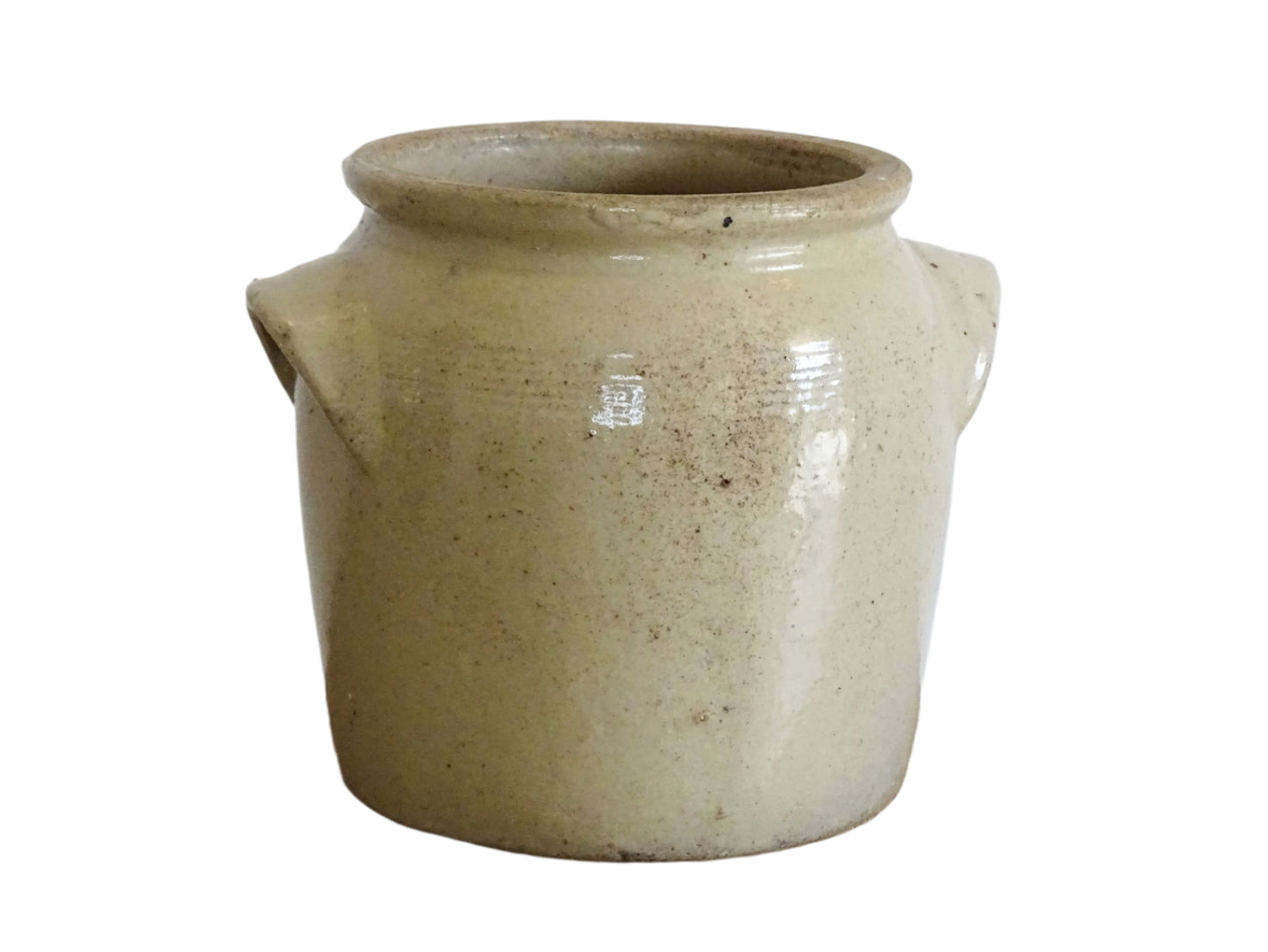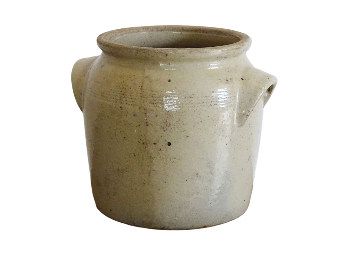 Antique French Stoneware Confit Jar with Beige Glaze Details: