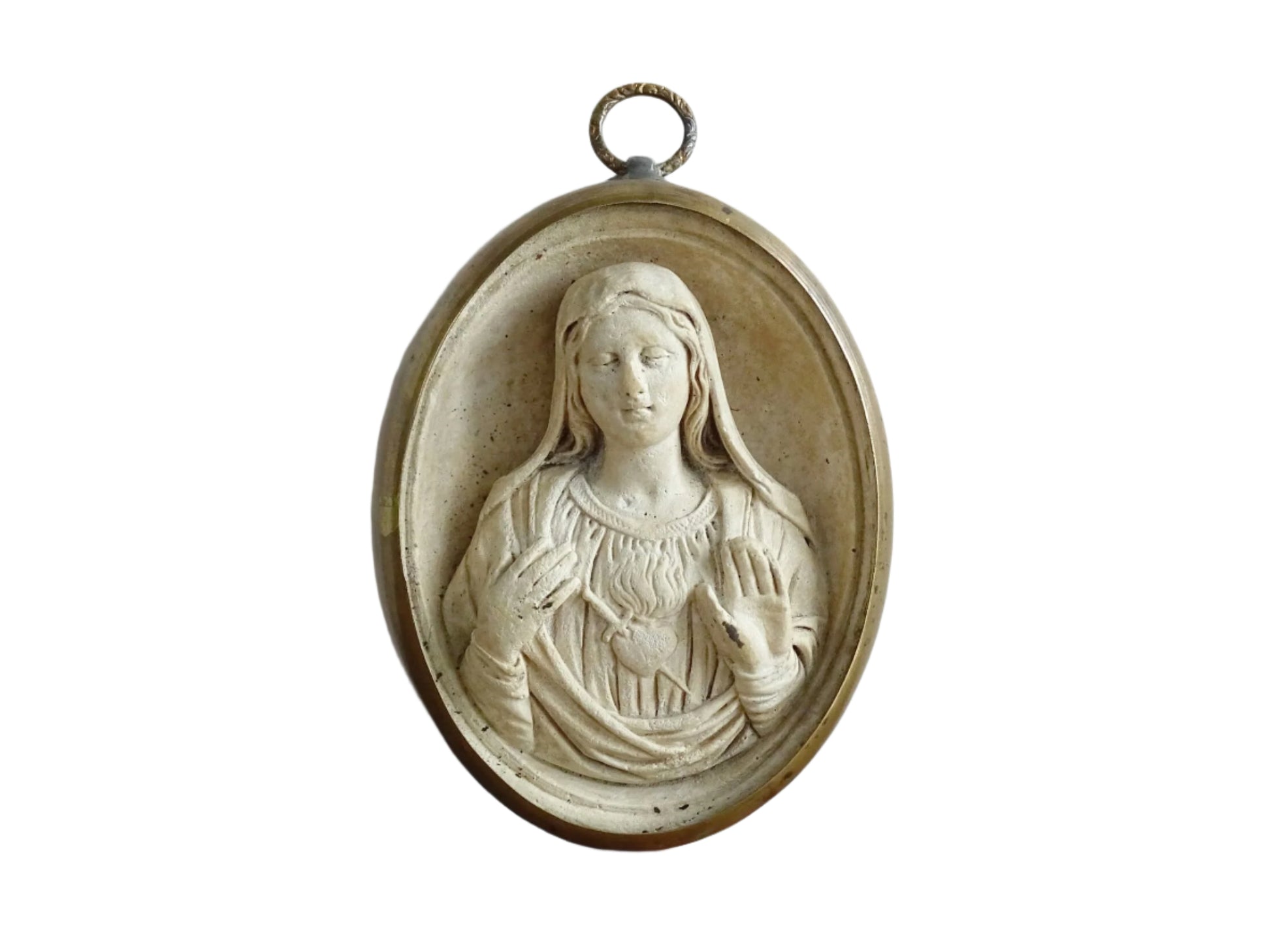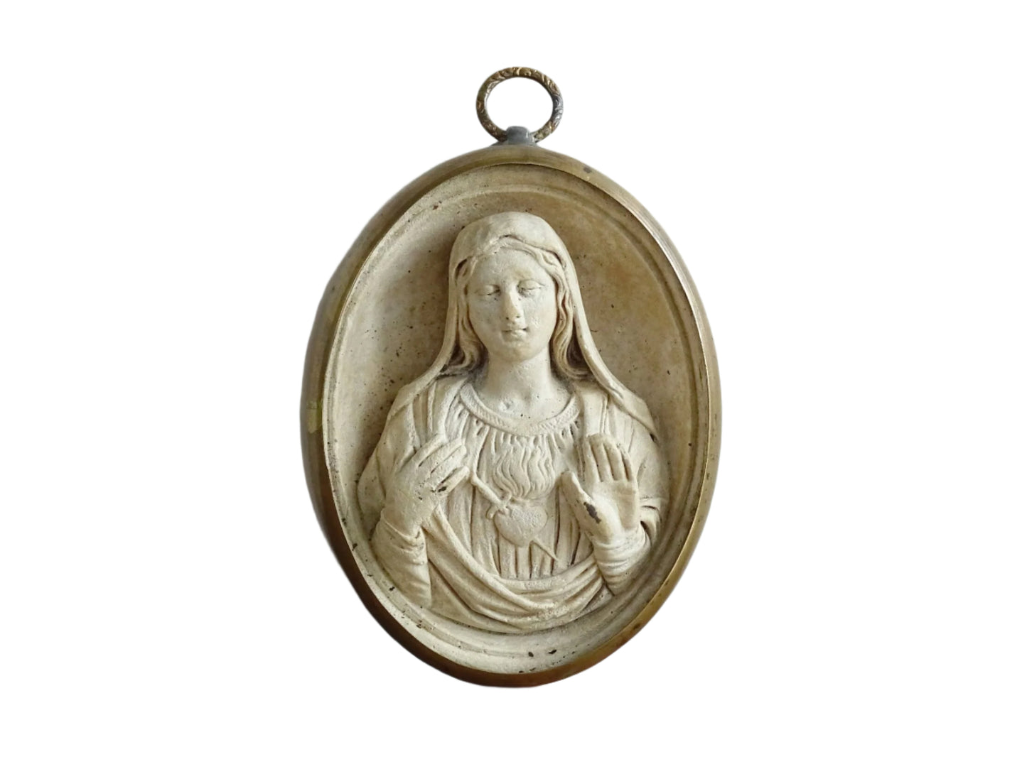 Antique Plaster Relief of the Sacred Heart of Mary 3.3"