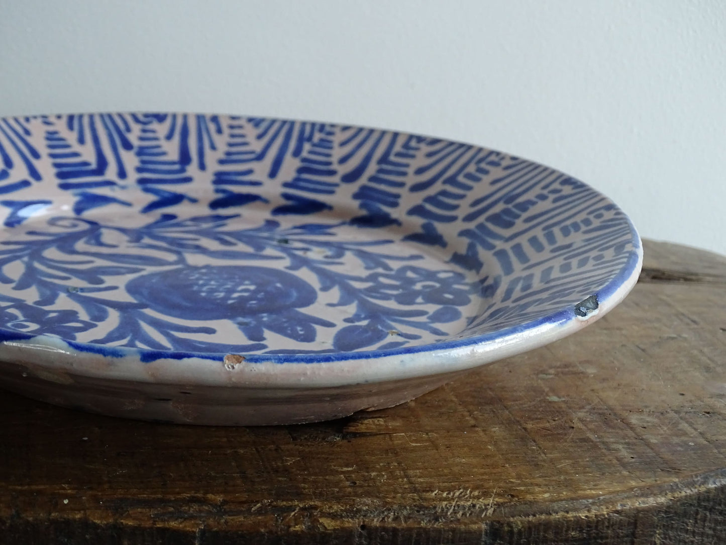 Antique Spanish Blue Fajalauza Plate with Pomegranate 9.8"