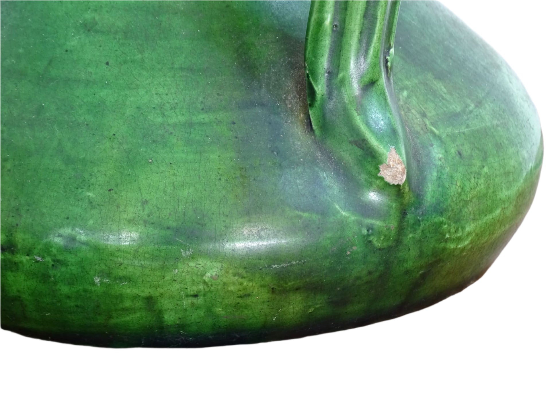 French Antique Art Nouveau Pottery Vase with Green Glaze Details: