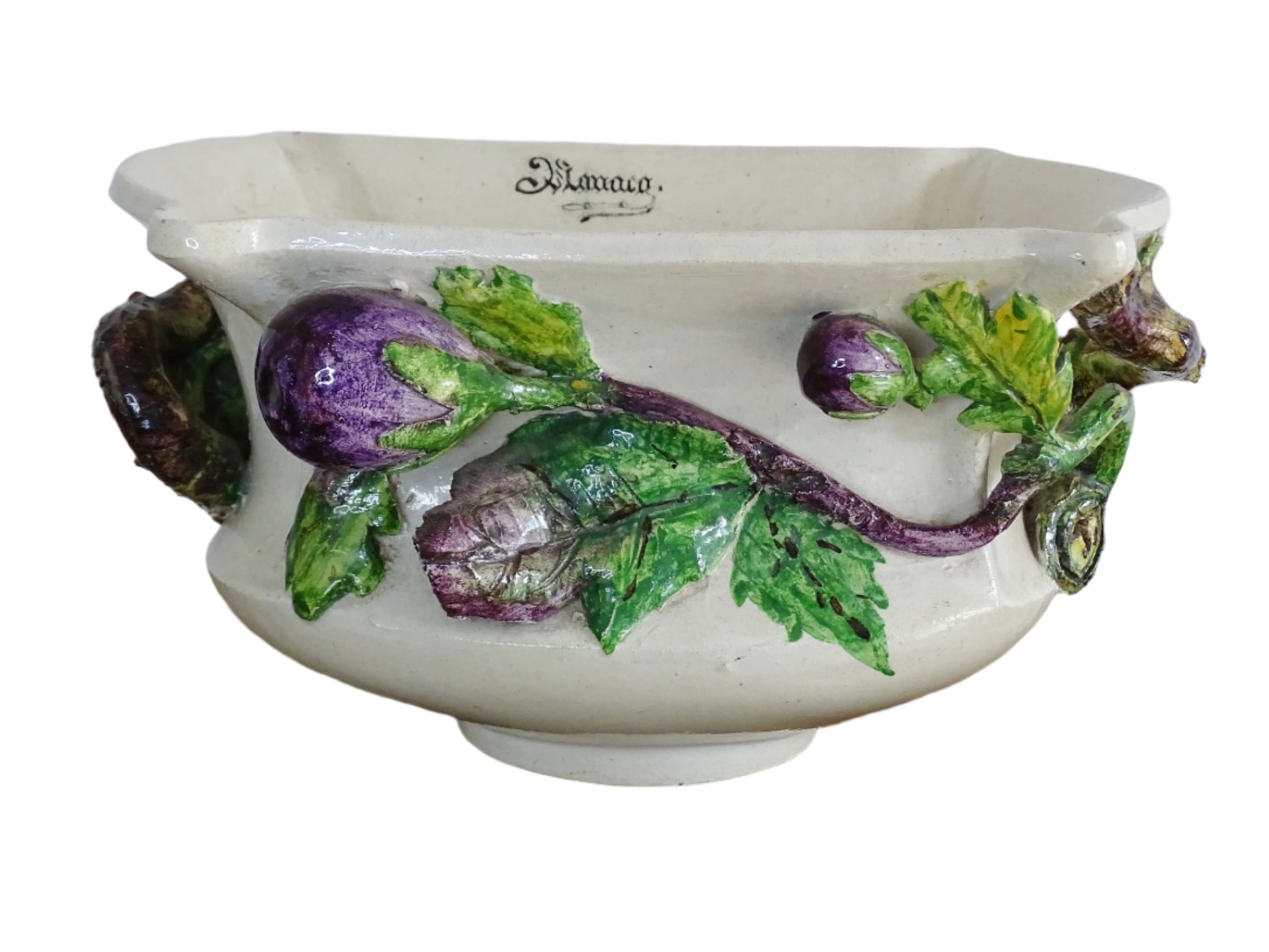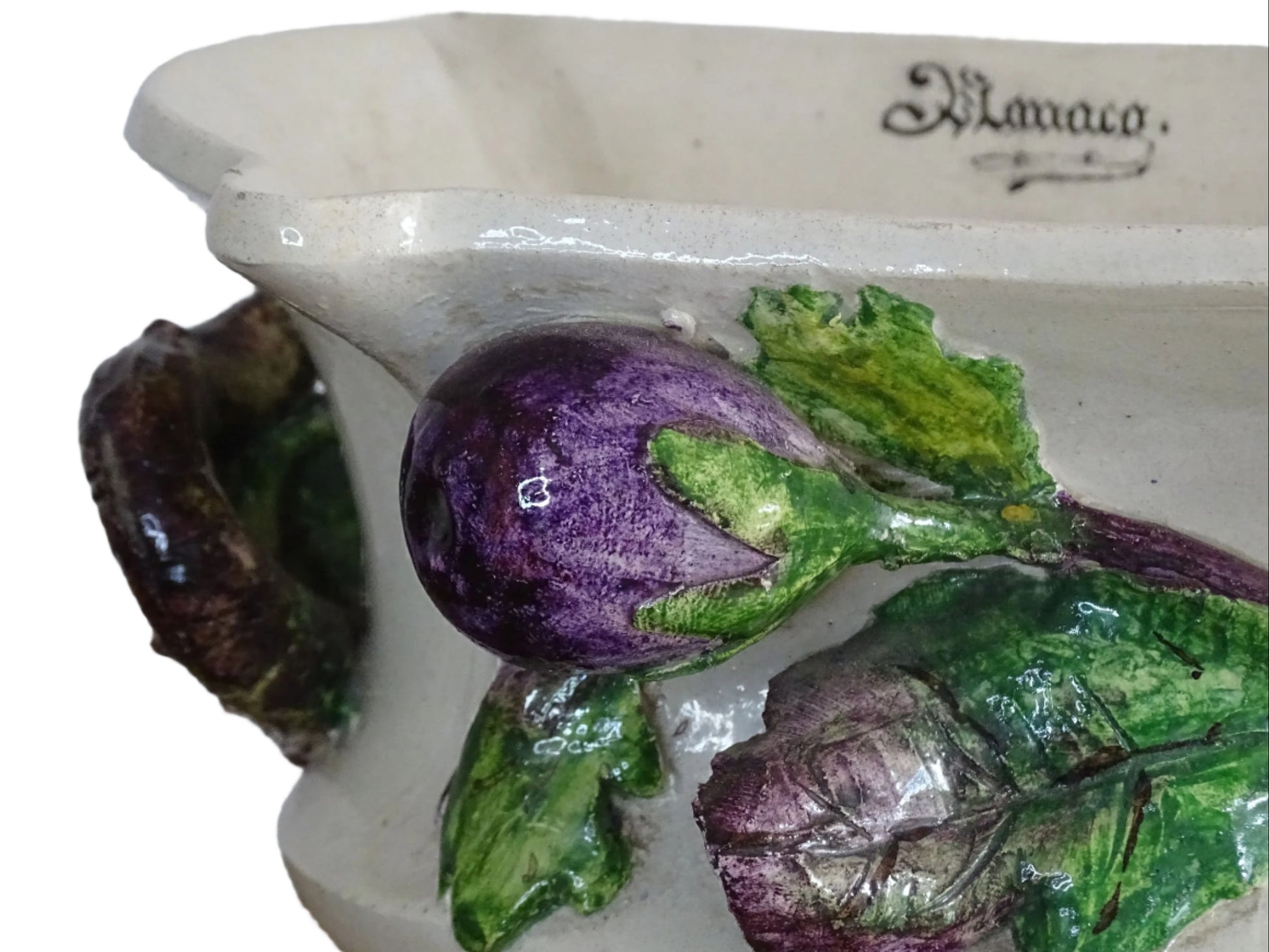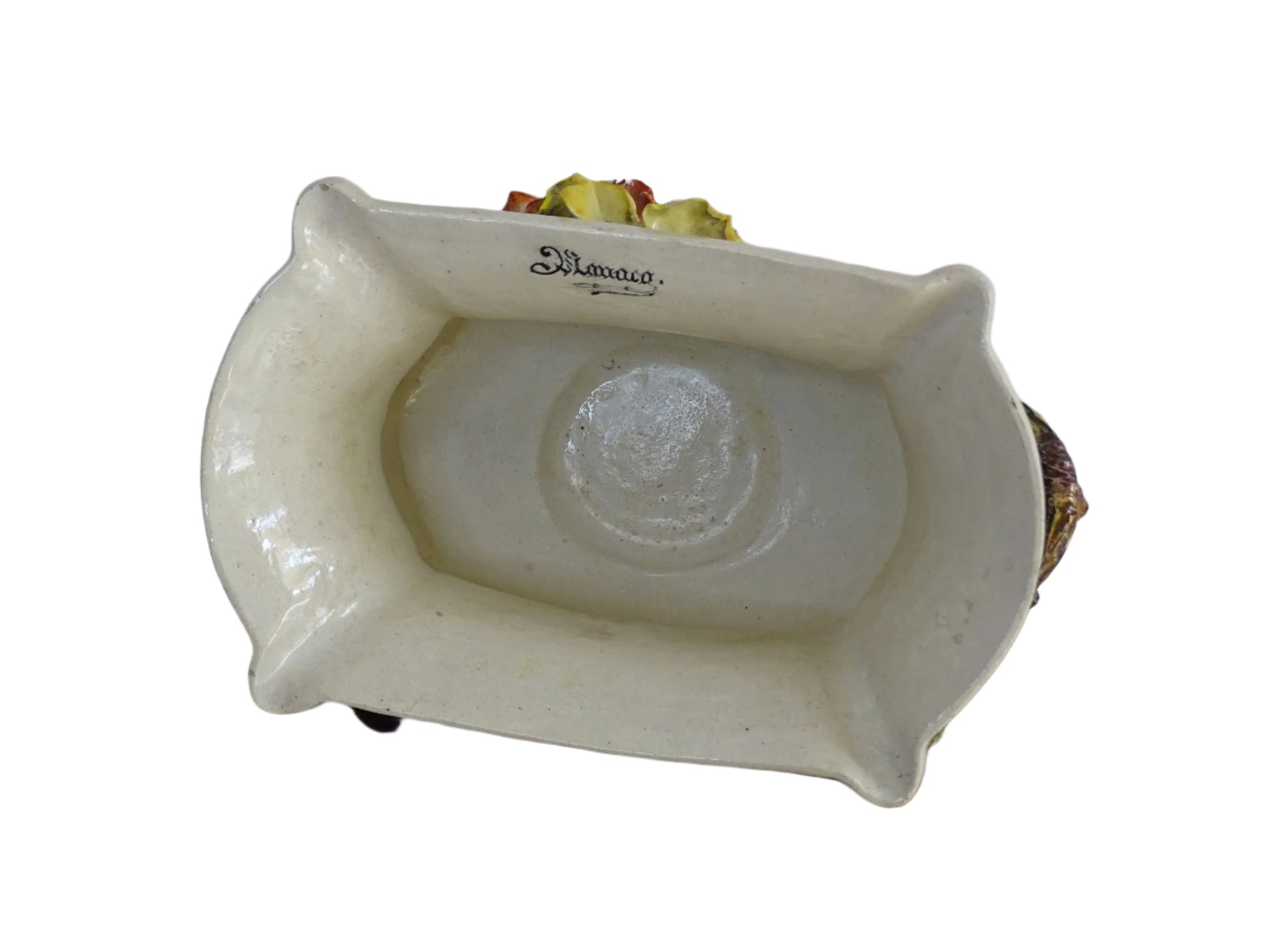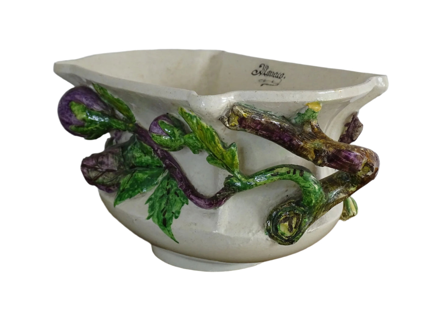 French Antique Barbotine Ceramic Planter, Monaco 9.1"