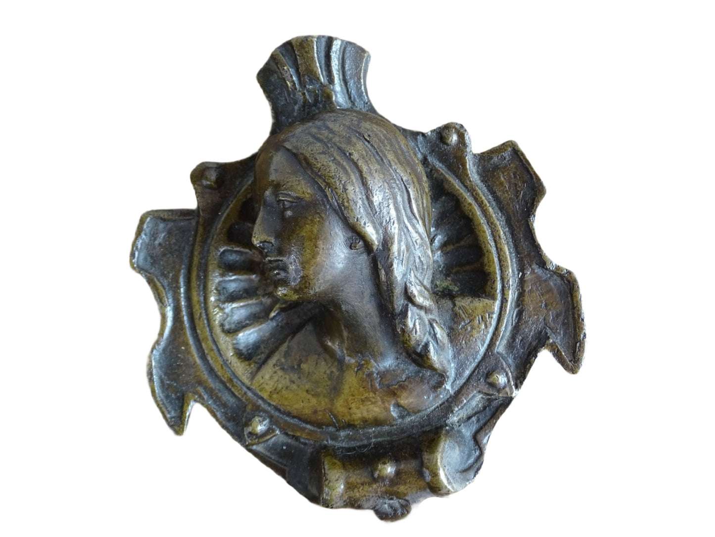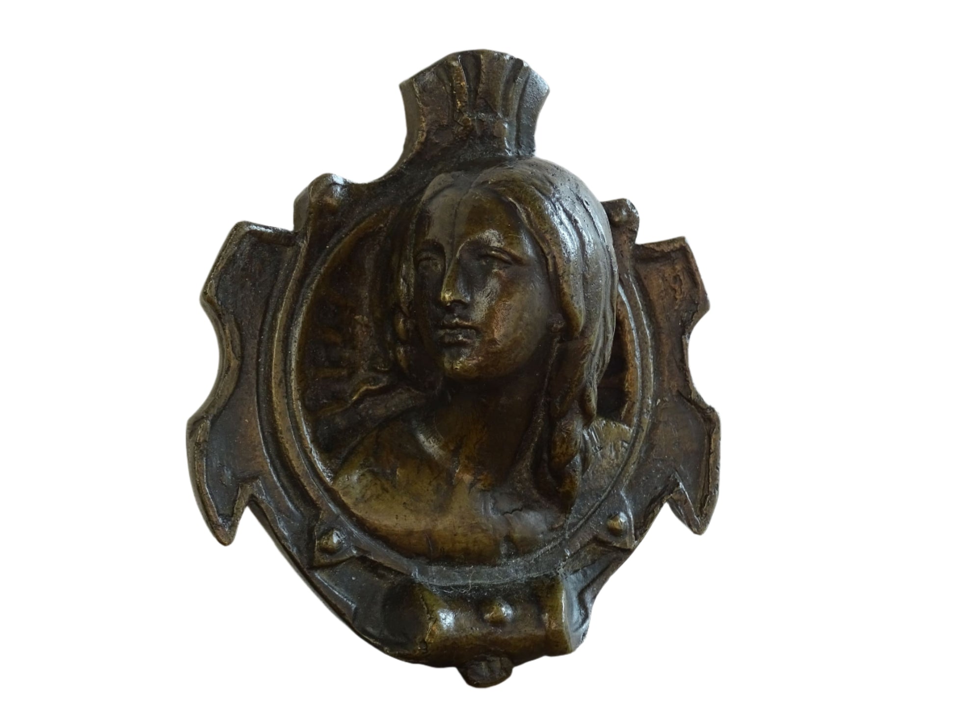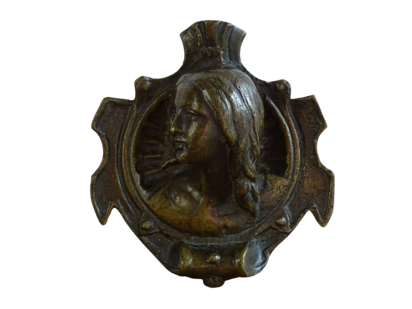 French Antique Bronze Plaque Depicting a Woman 5.3"