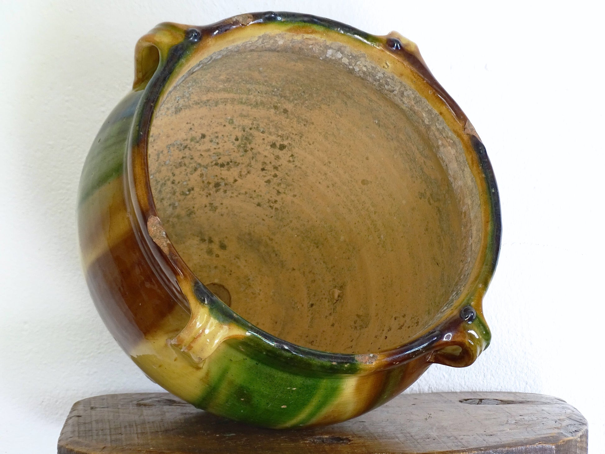 There is some wear to the glaze which adds to the timeworn character of this lovely French antique planter. Please check the photographs.