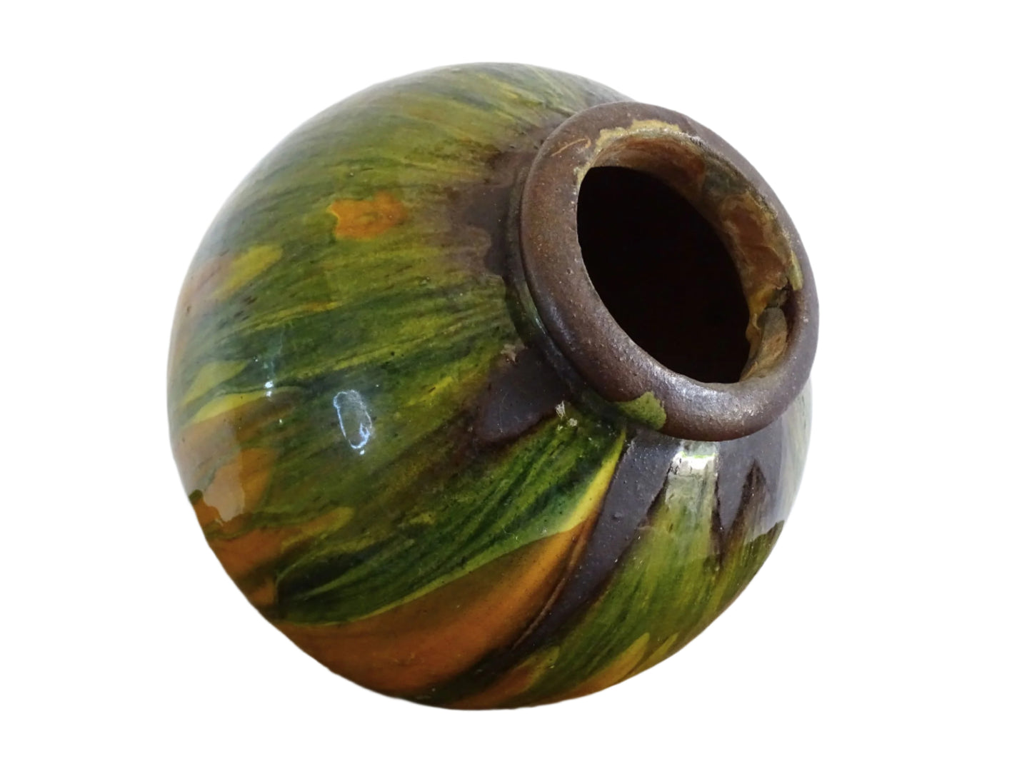 French Antique Ceramic Vase with Orange Drip Glaze 7.7"