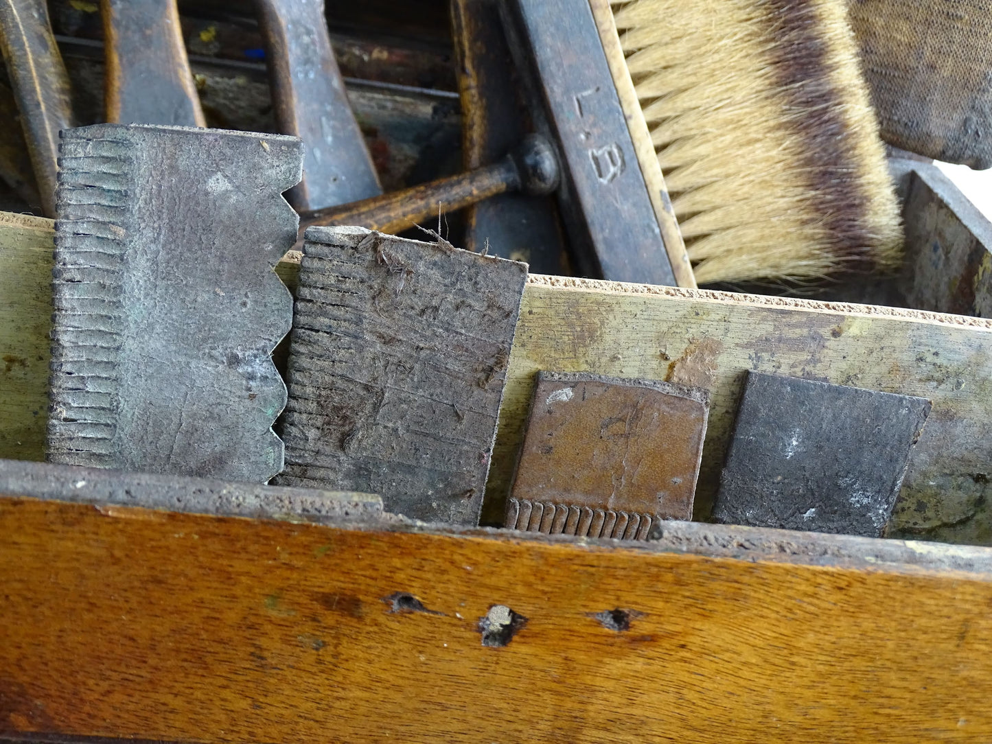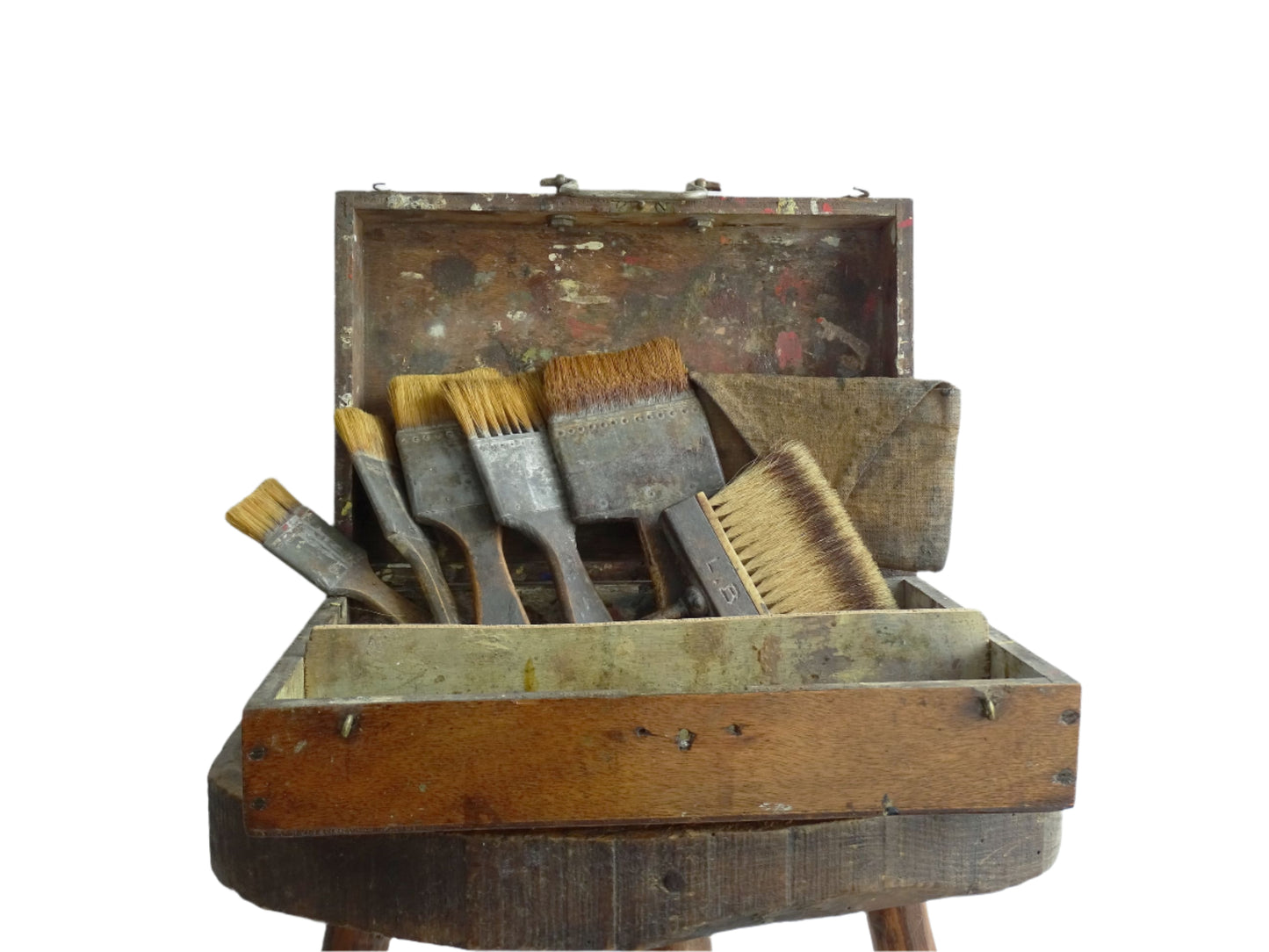 French Antique Paint Box with Brushes Details: