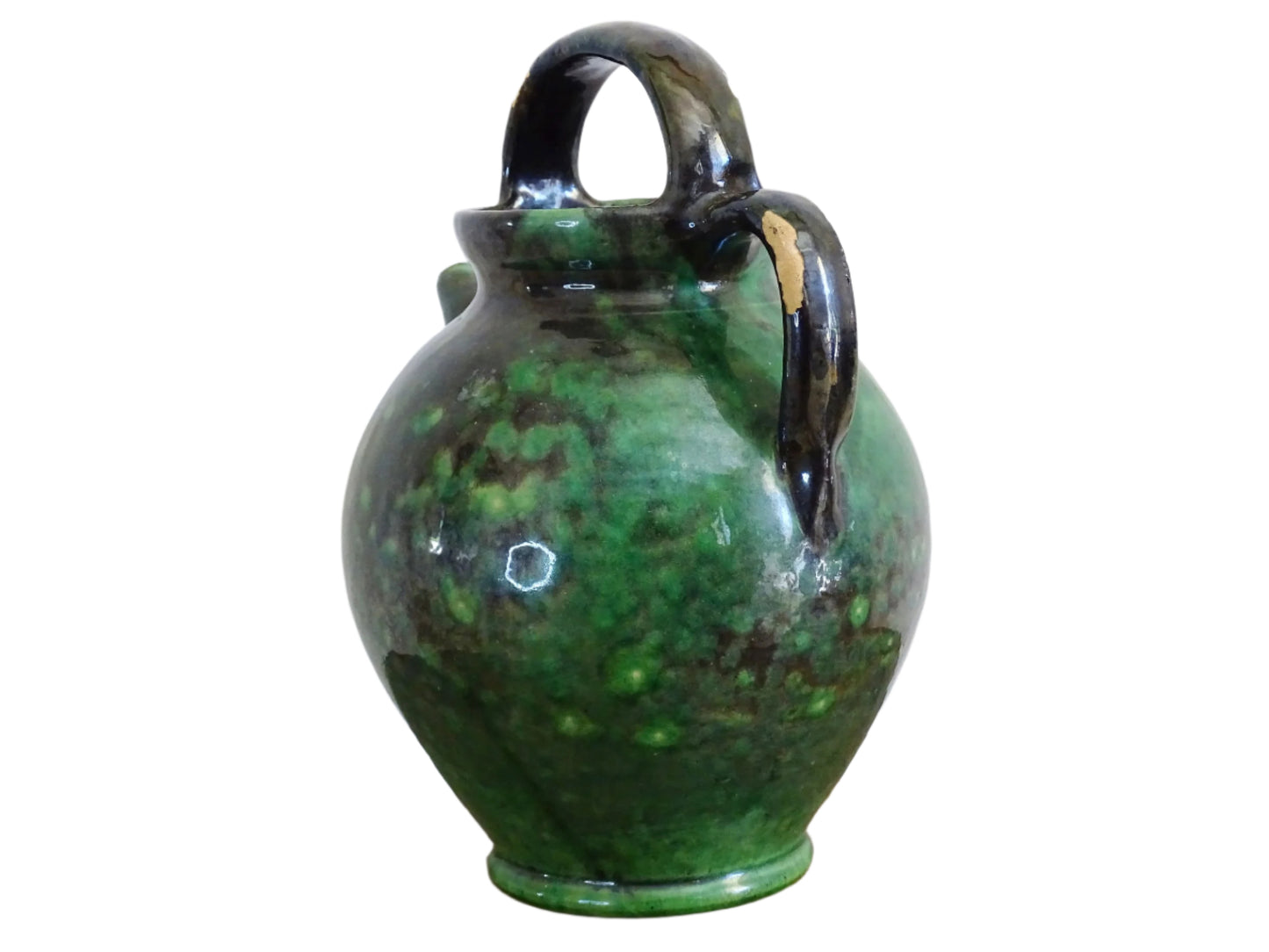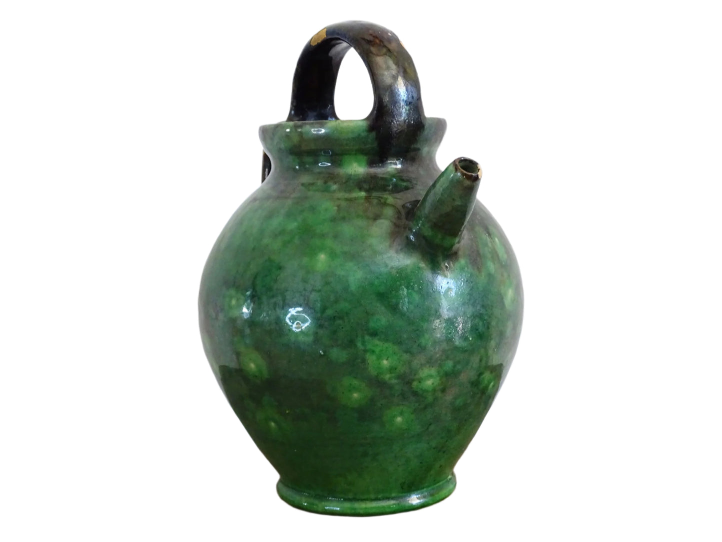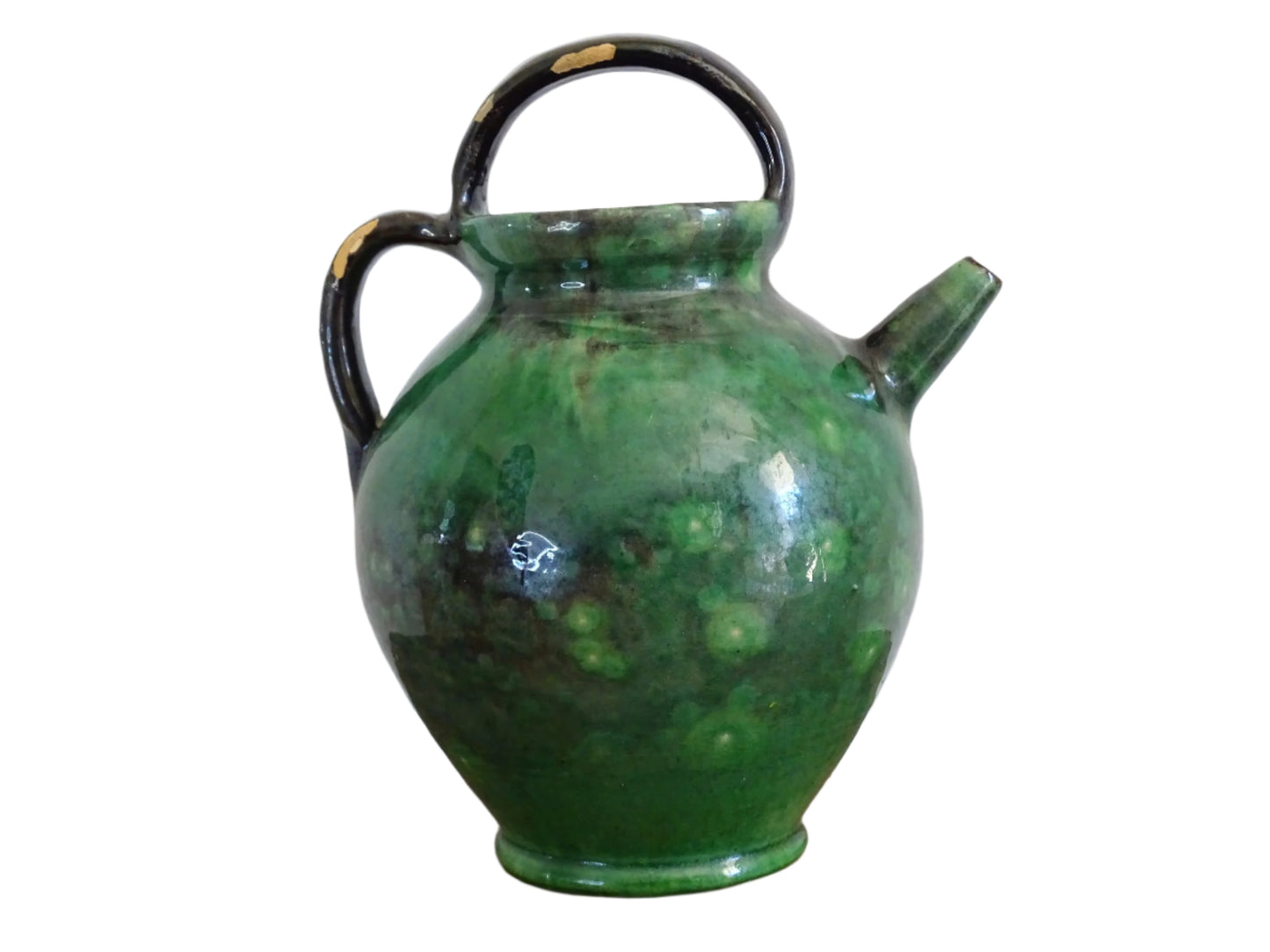 French Antique Pottery Gargoulette with Green Glaze 8.7"