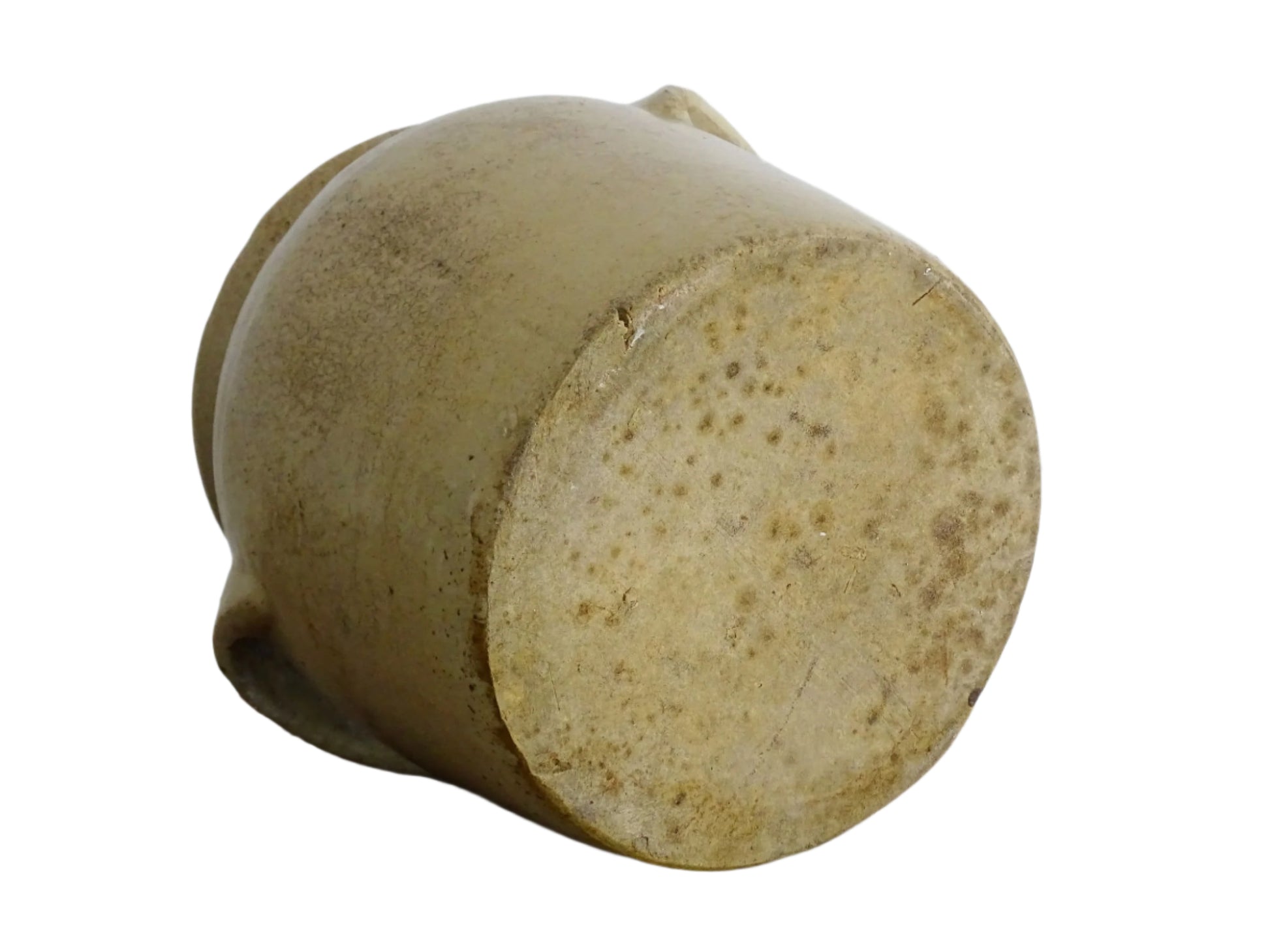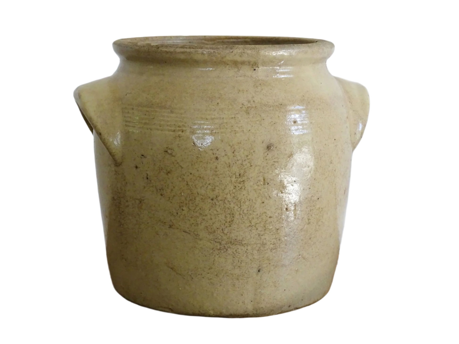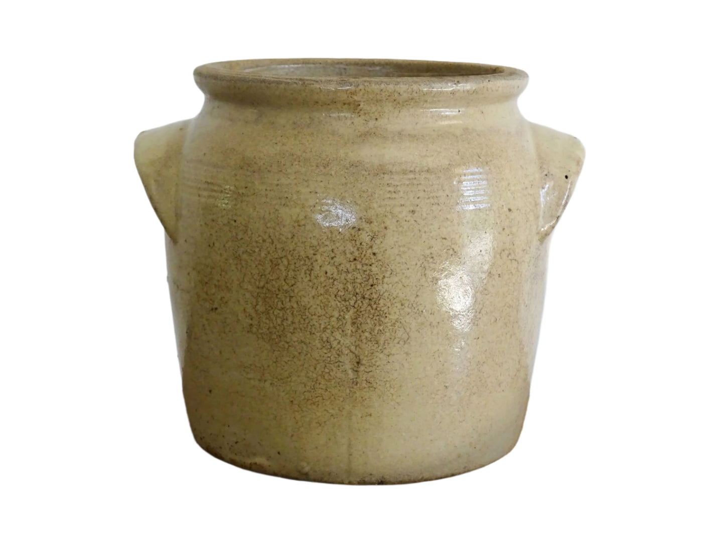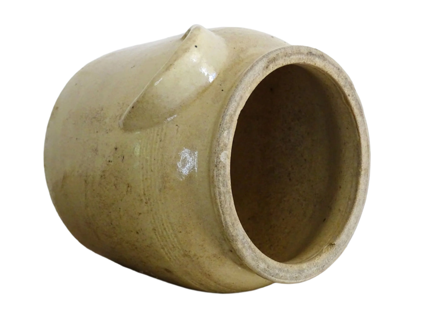 French Antique Stoneware Confit Pot with Beige Glaze Details: