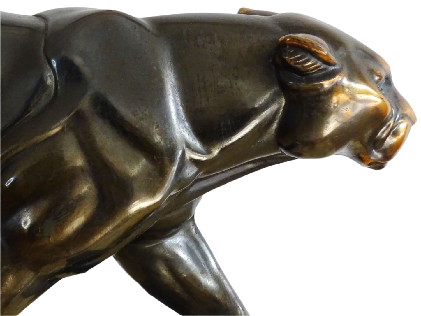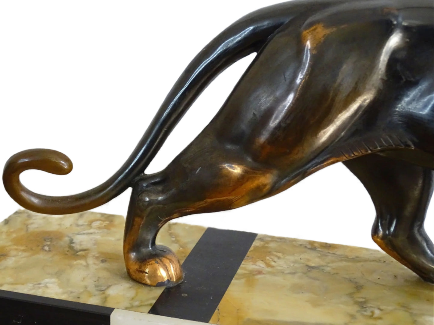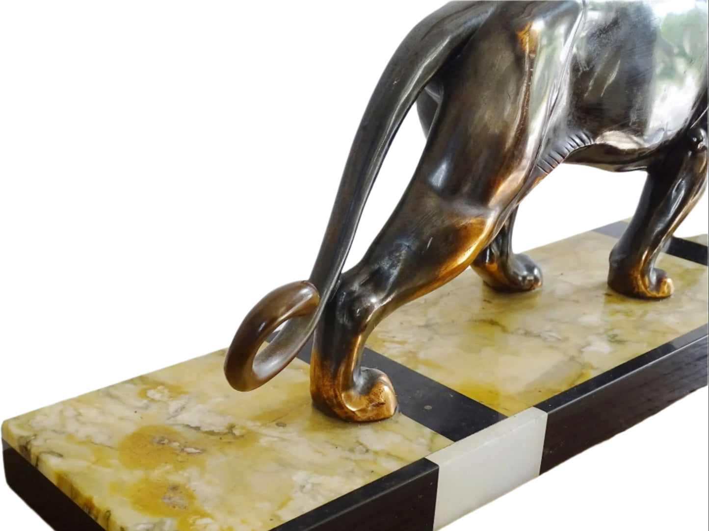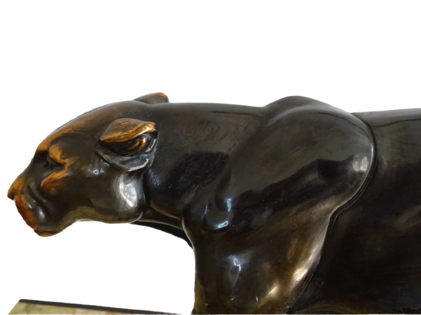 French Art Deco Panther Sculpture on Marble Base 19.6"