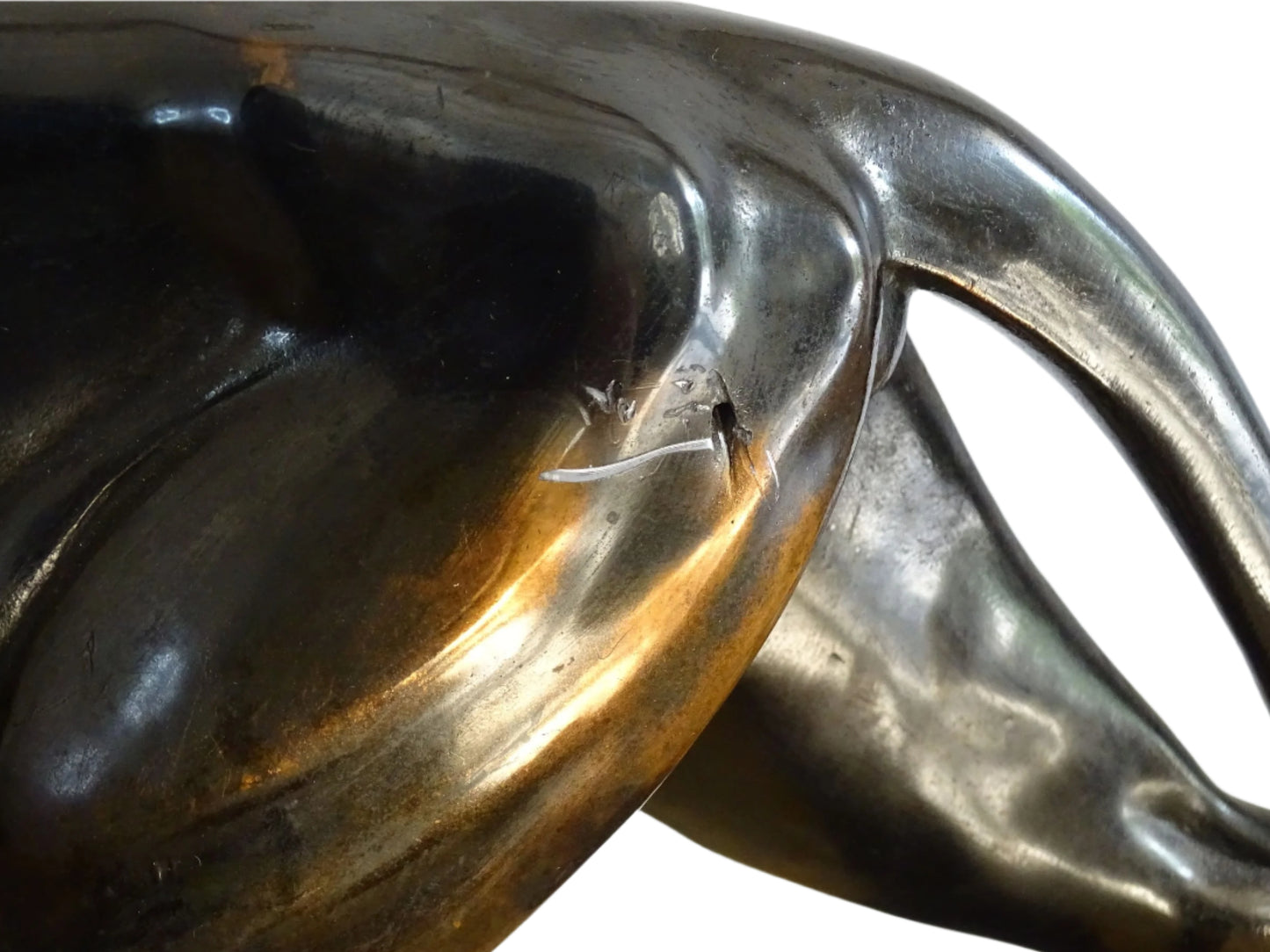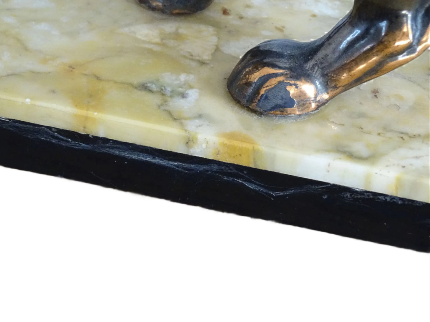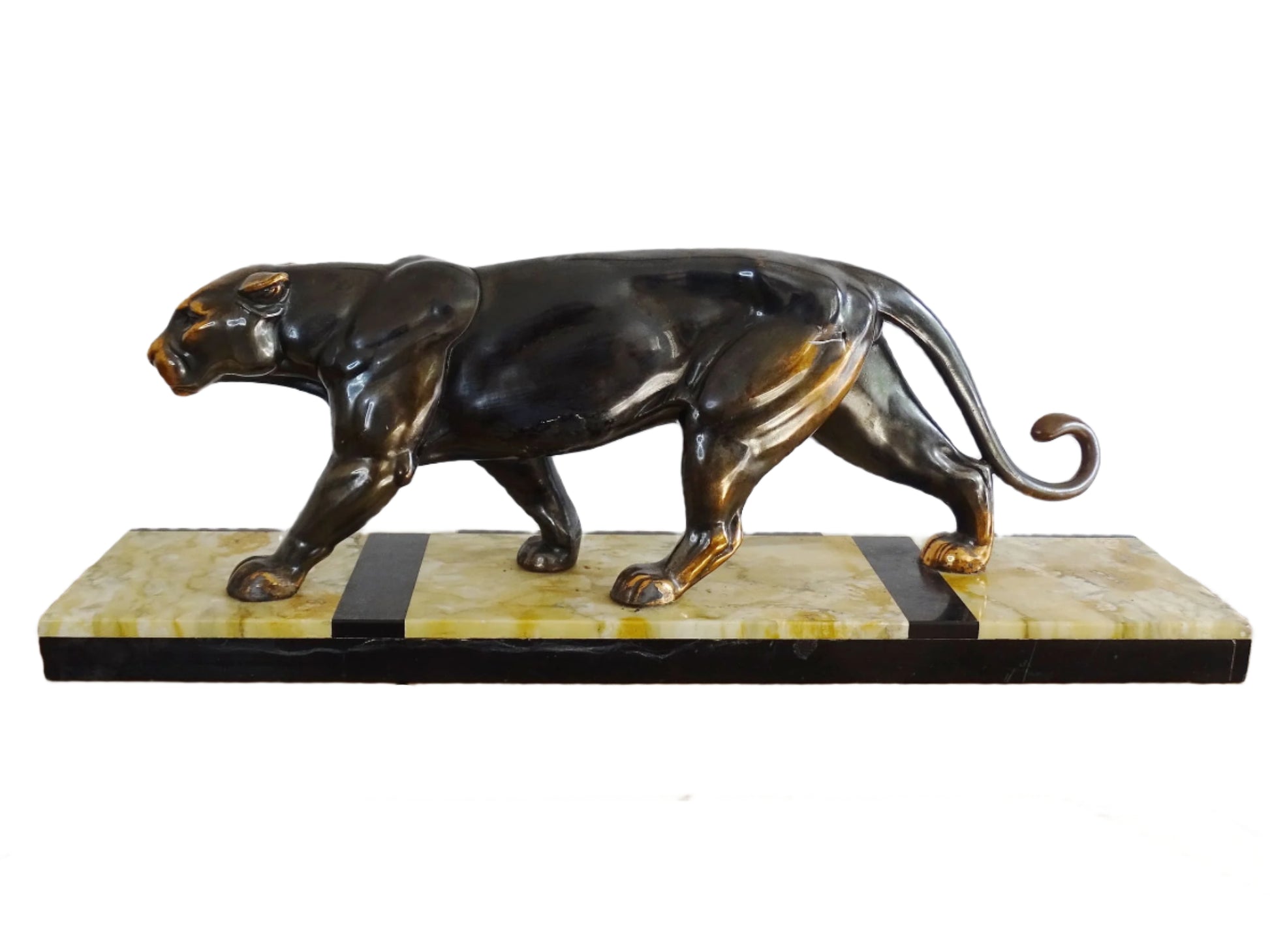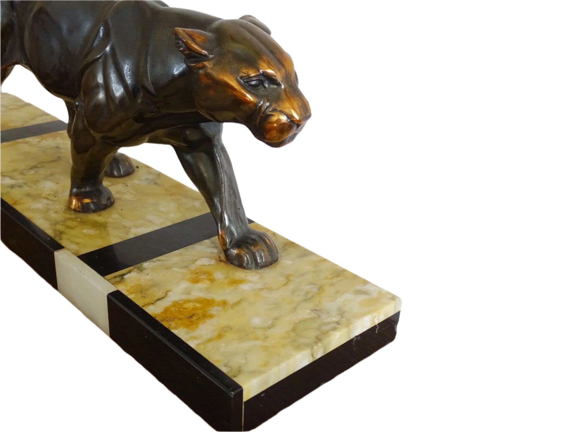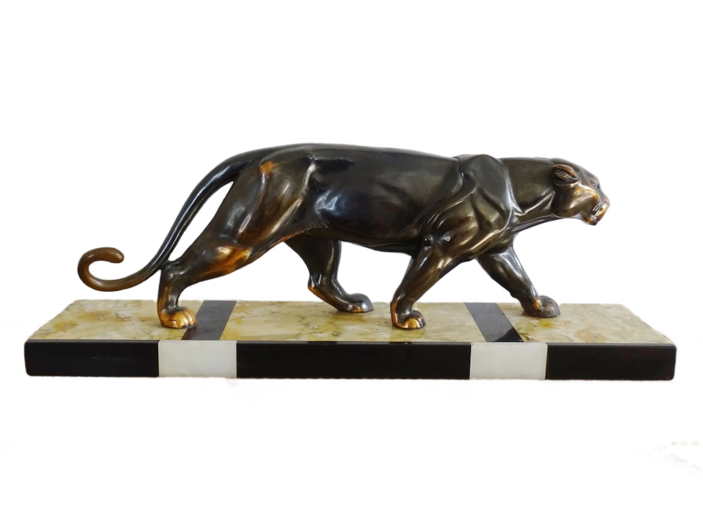 French Art Deco Panther Sculpture on Marble Base 19.6"