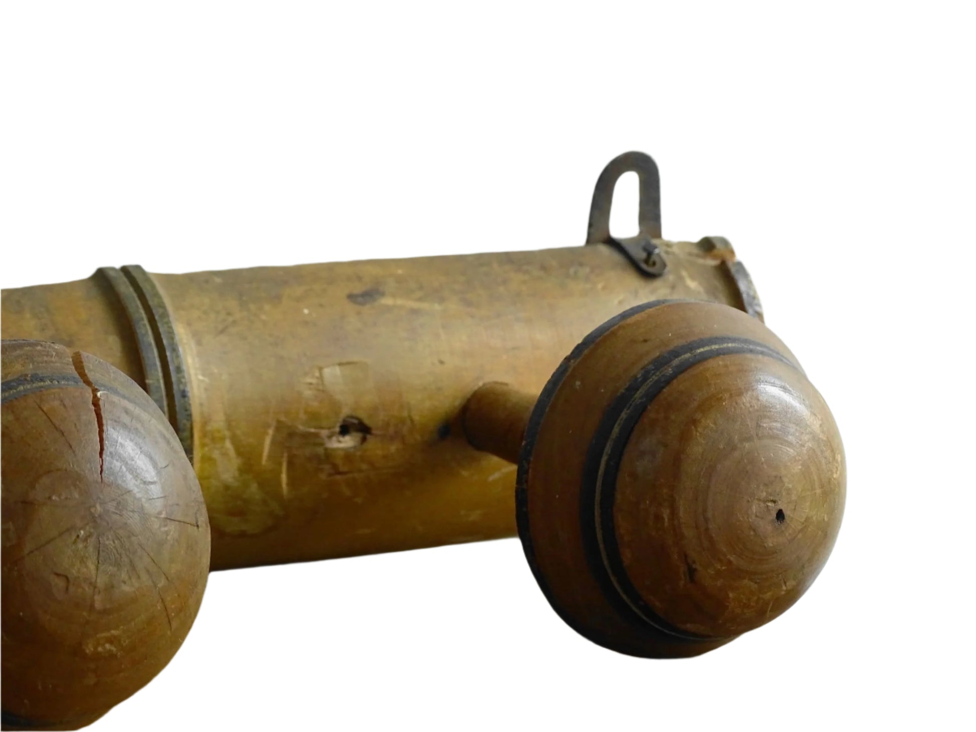 It has some wear and splits to the wood, please refer to the photos.