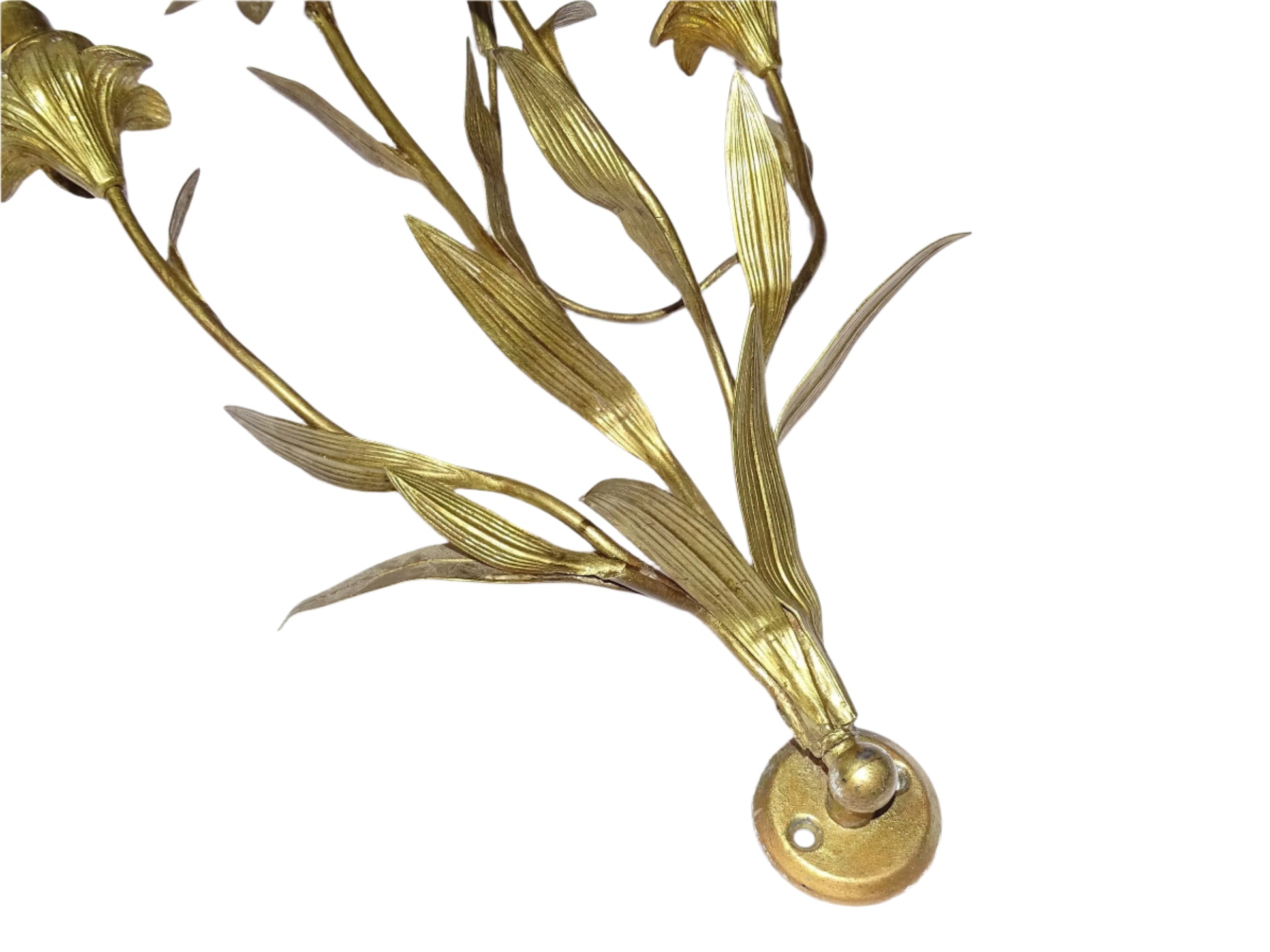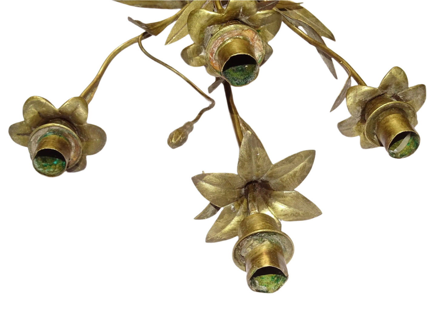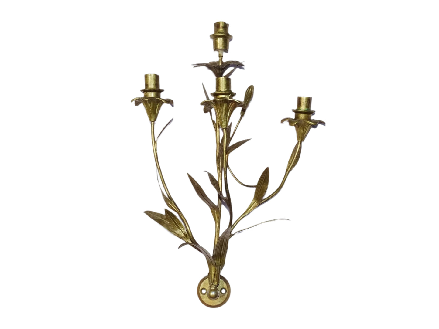Italian vintage gilt metal candle sconce with leaves and flowers. Highly decorative, the sconce can be screwed onto the wall and has space for four candlesticks. It would make a beautiful decoration.