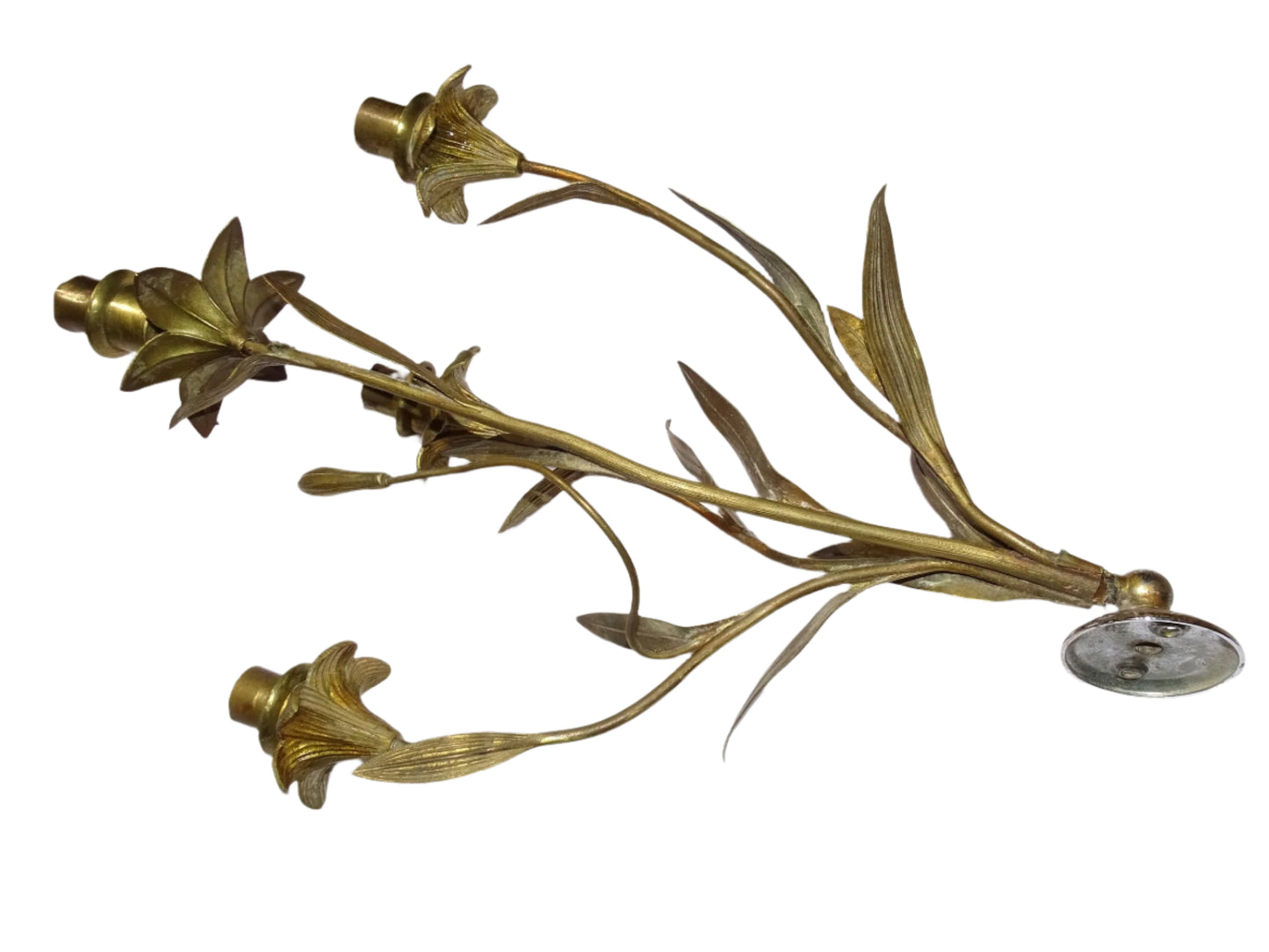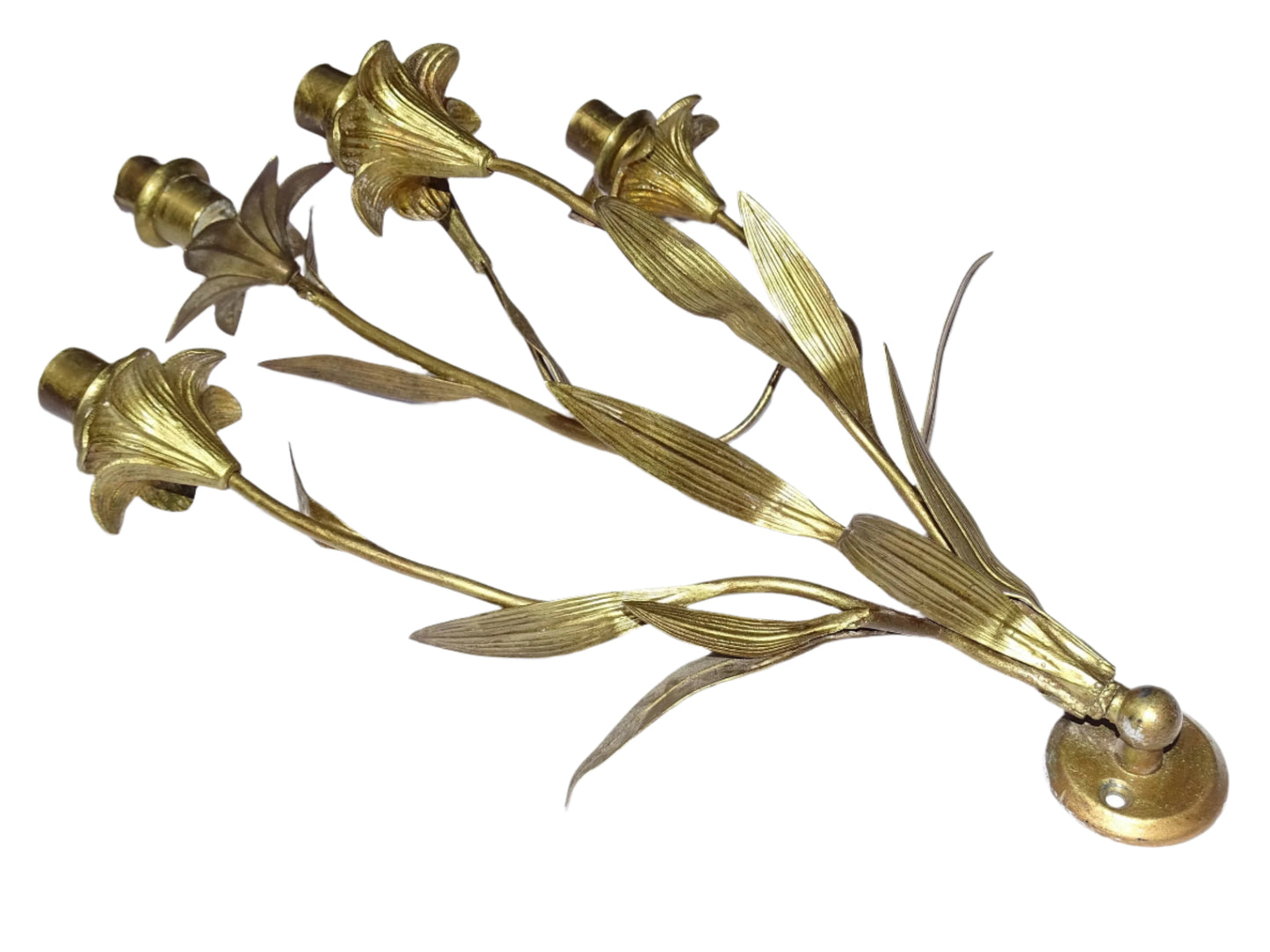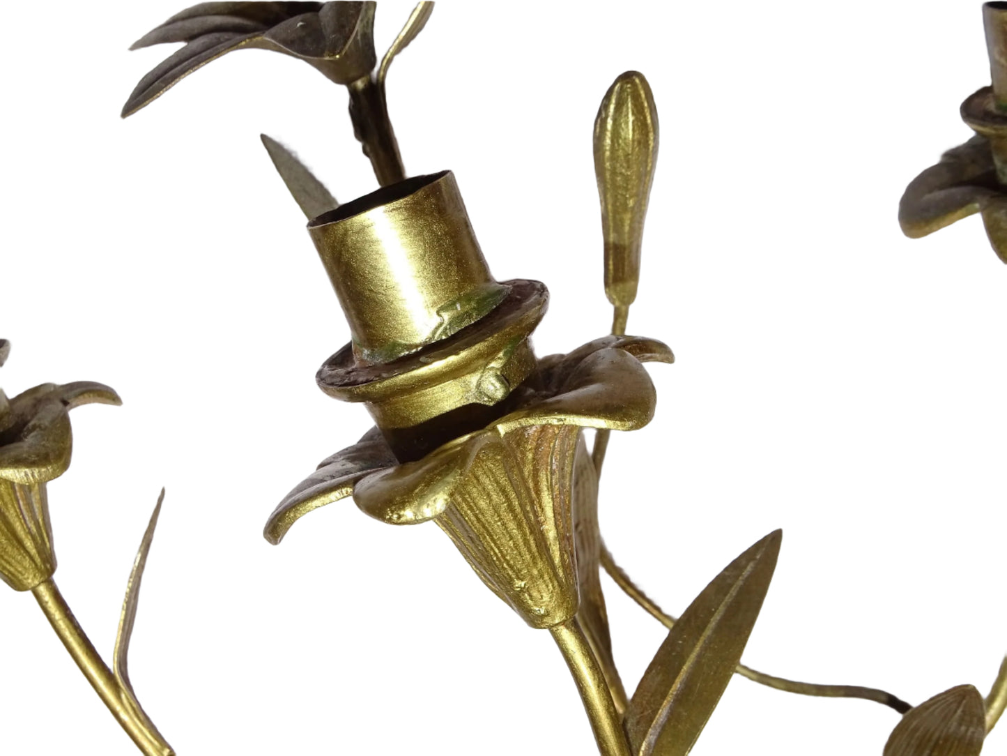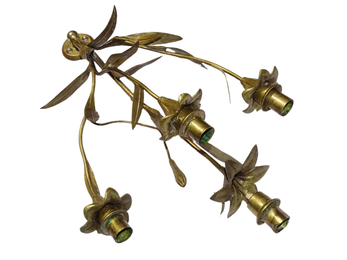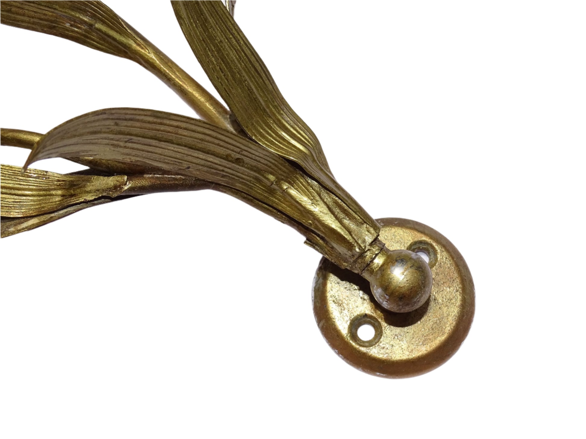 Italian Vintage Gilt Metal Candle Sconce with Leaves and Flowers 16.5"