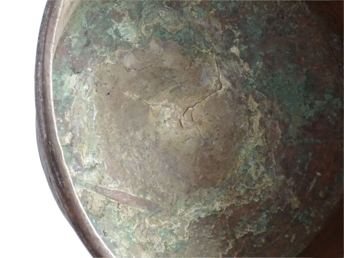 There have been repairs, please see the photos. The cauldron is not watertight.