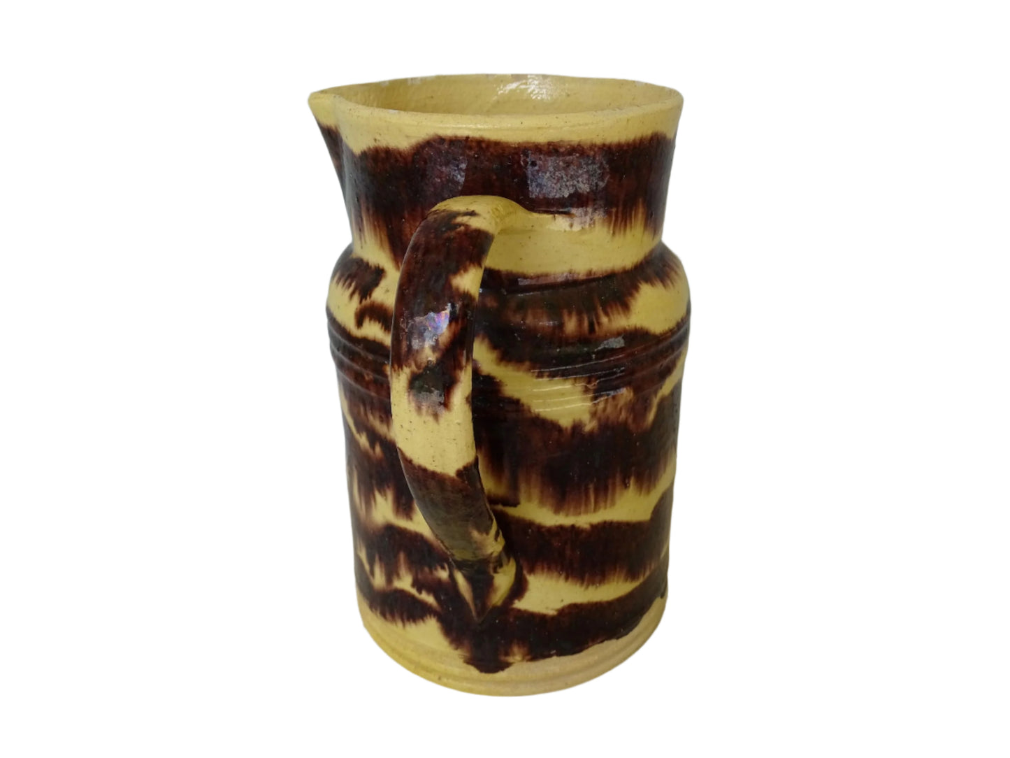 Large French Antique Ceramic Pitcher from Dieulefit with Yellow Glaze 7.9"