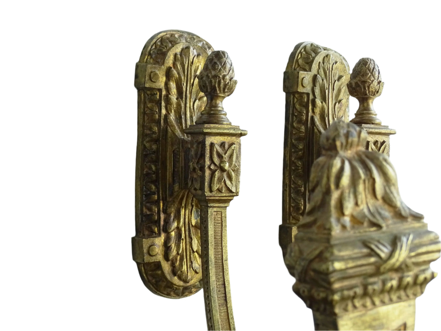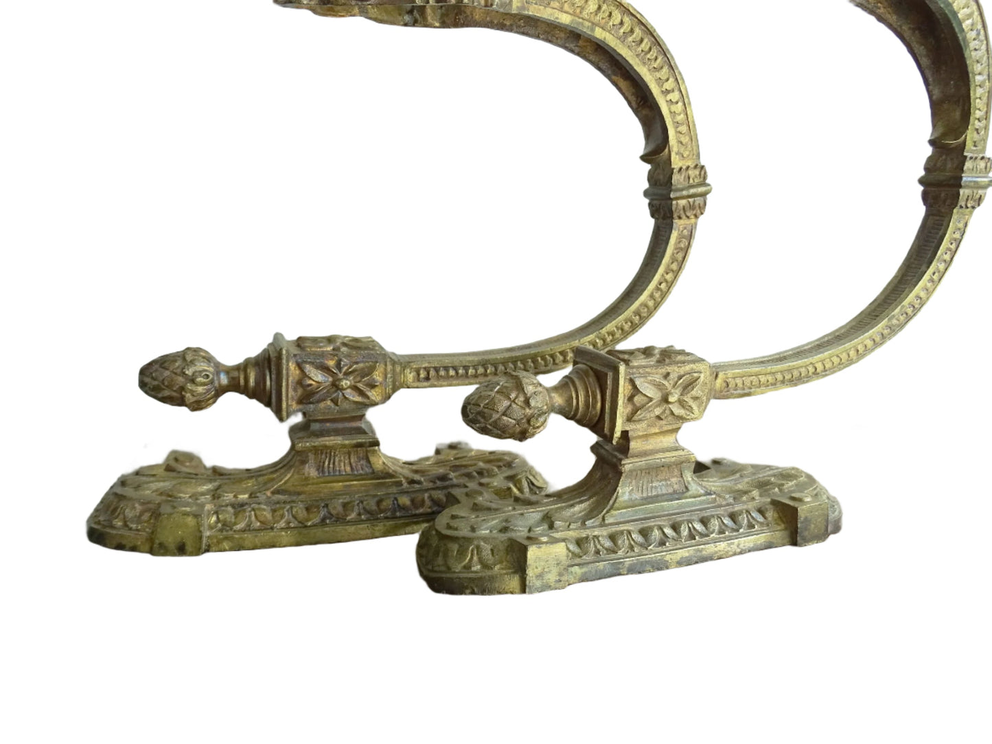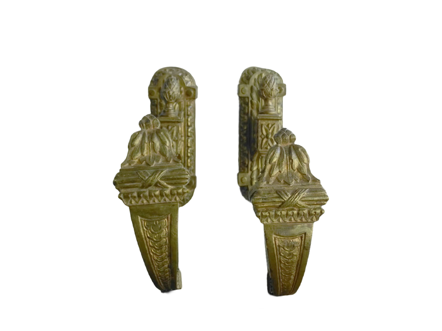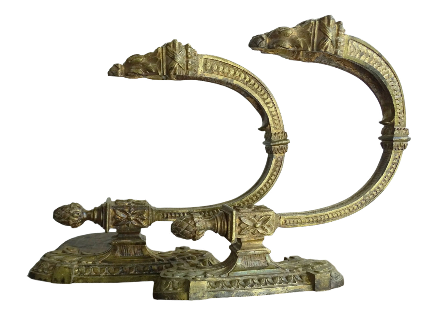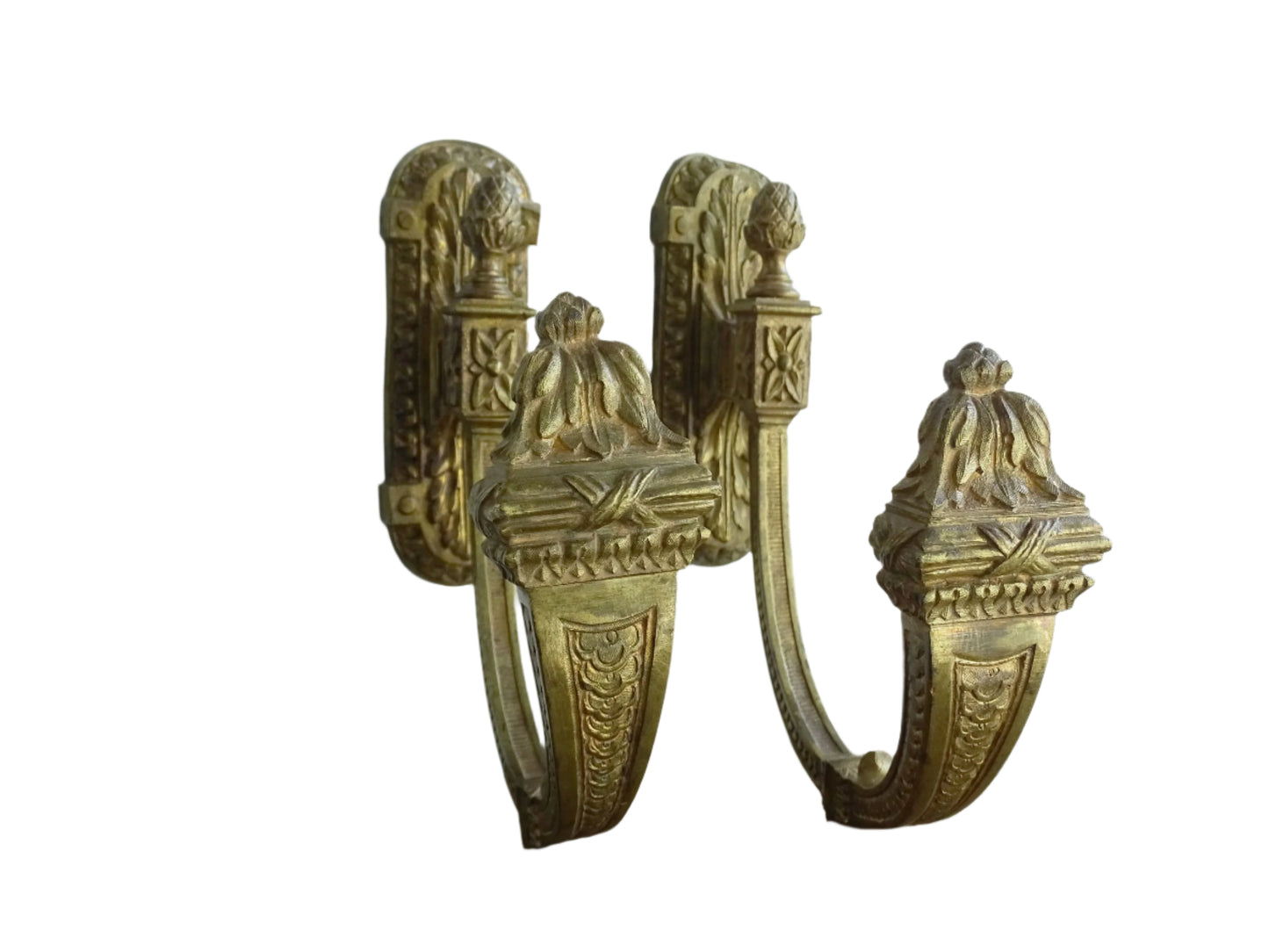 Large Pair of French Antique Curtain Hooks in Gilt Bronze Details: