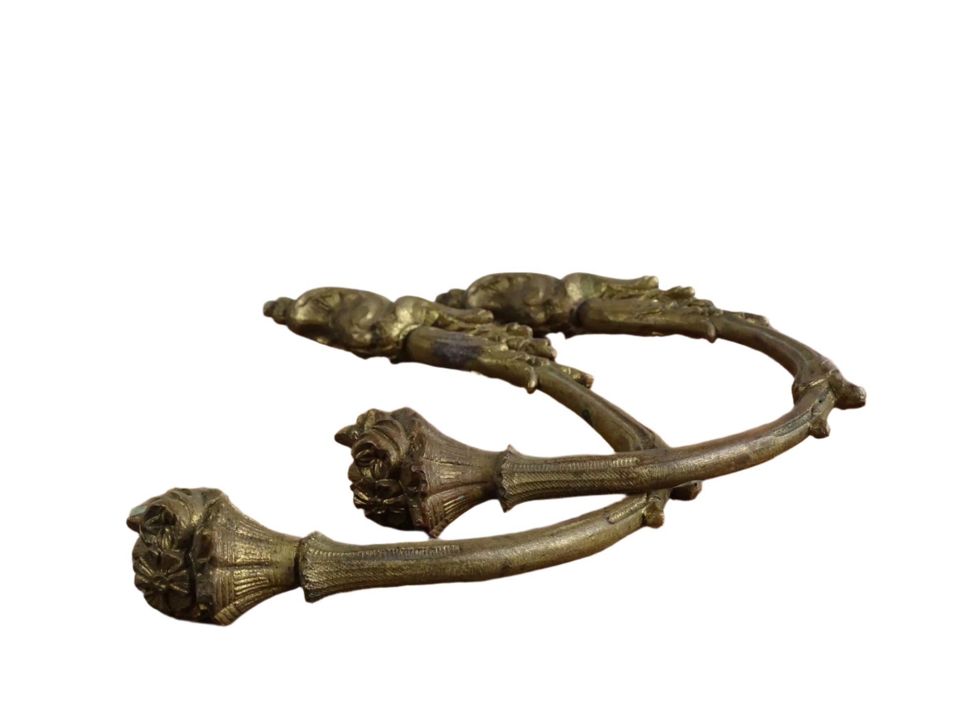 These antique curtain tiebacks, with their warm patina, would add a gorgeous touch to a window setting. Alternatively, these pieces could be used as decorative wall hooks or as towel hooks in the bathroom.