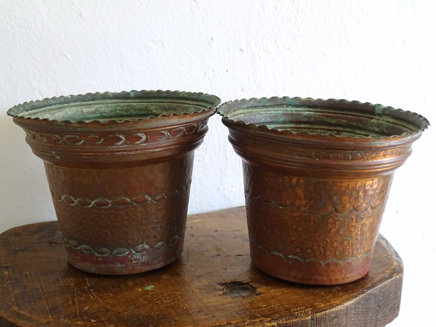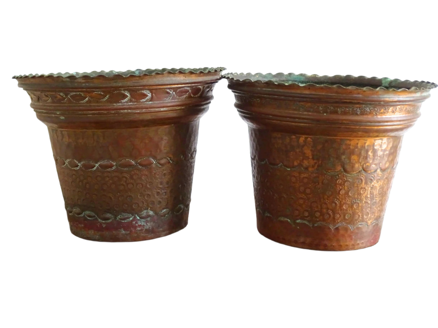 Pair of French Vintage Copper Planters 7.1"
